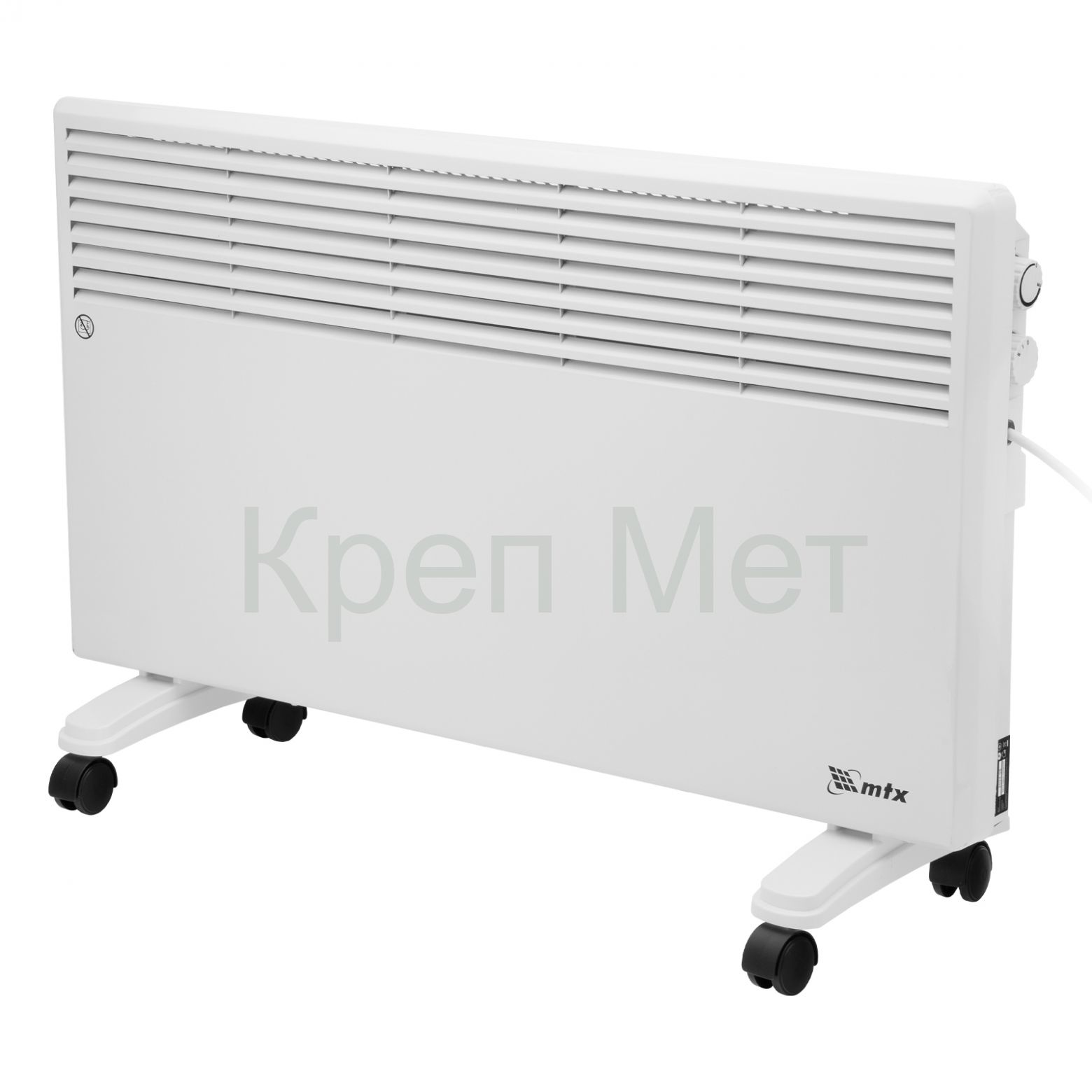 Электрический конвектор MTX CH-2000 98107 максимальной мощностью 2000 Вт, с X-образным нагревателем, термостатом и колесами, — источник тепла для жилых, офисных и хозяйственных помещений. X-образный нагревательный элемент позволяет быстро и равномерно нагреть помещение до нужной температуры. Площадь обогрева составляет 25 м2.