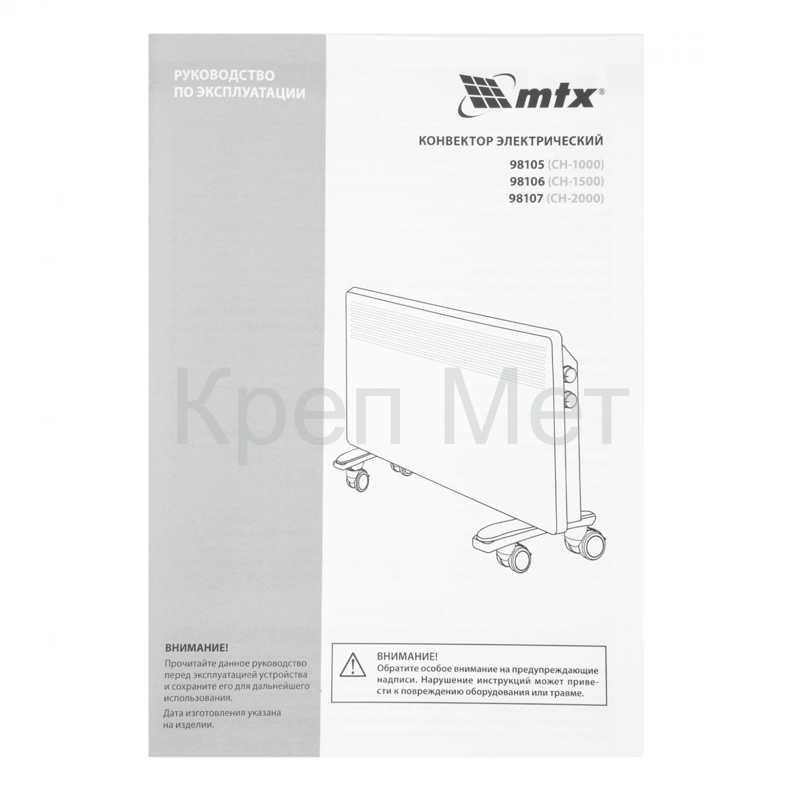- Конвектор электрический CH-2000, 2000 Вт, X-образный нагреватель, термостат, колеса MTX