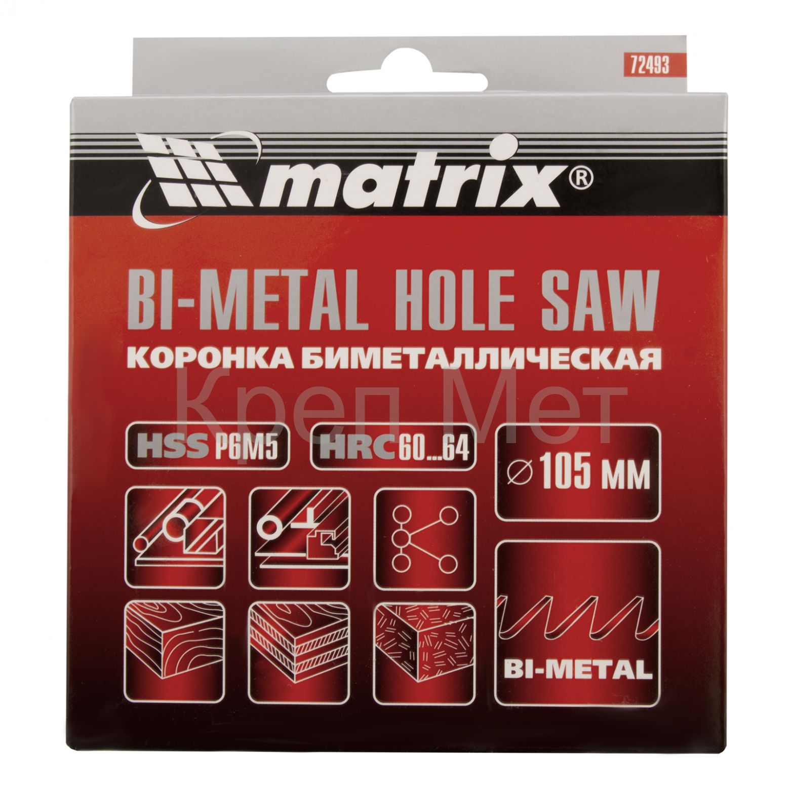 Коронка Matrix BIMETAL 72493 диаметром 105 мм — режущий инструмент, который устанавливается на дрель, перфоратор или стационарный станок. Используется для быстрого сверления черных и цветных металлов, пластика и других материалов. Позволяет получить отверстия большого диаметра при проведении электромонтажных работ и прокладке коммуникаций.