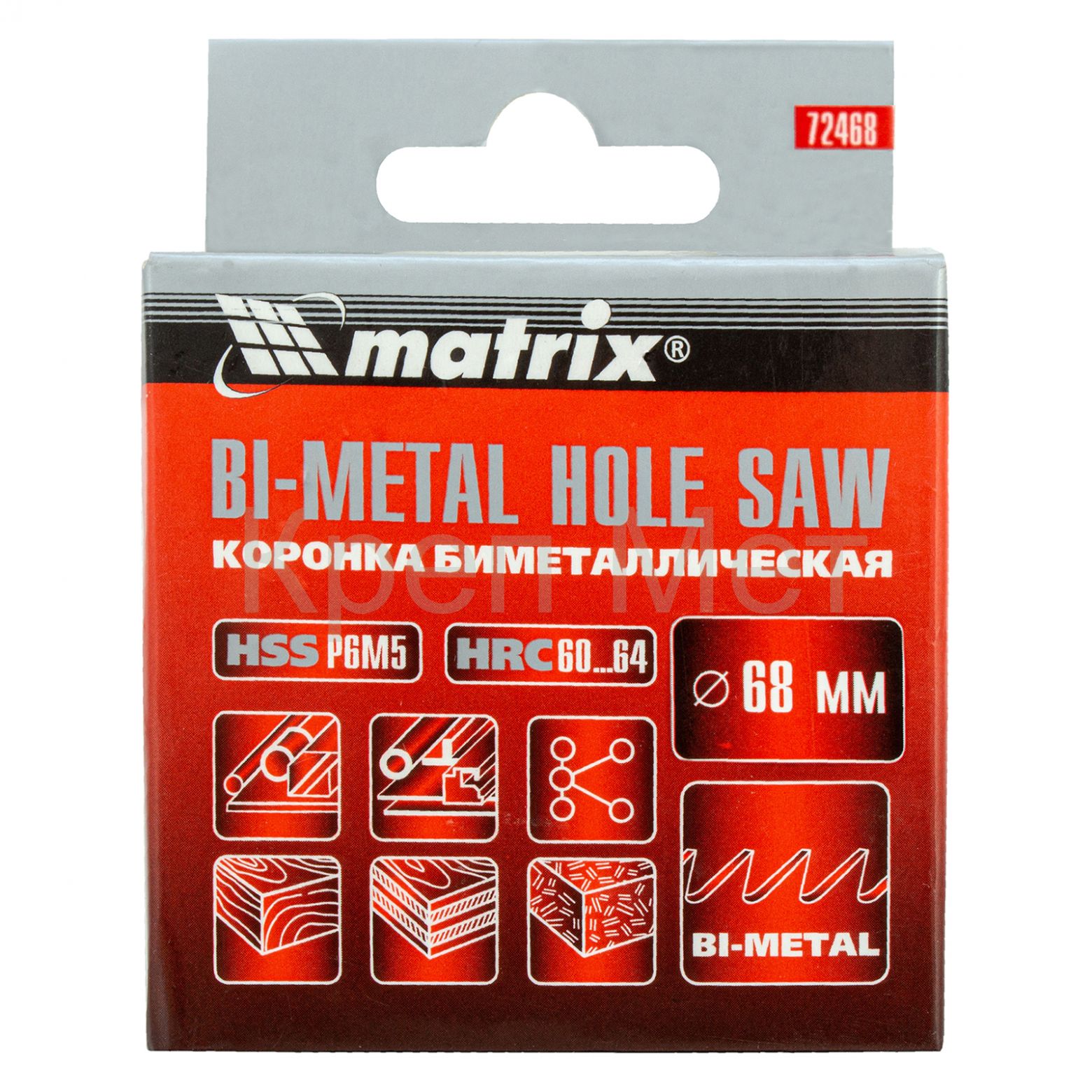 Коронка Matrix BIMETAL 72468 диаметром 68 мм — режущий инструмент, который устанавливается на дрель, перфоратор или стационарный станок. Используется для быстрого сверления черных и цветных металлов, пластика и других материалов. Позволяет получить отверстия большого диаметра при проведении электромонтажных работ и прокладке коммуникаций.