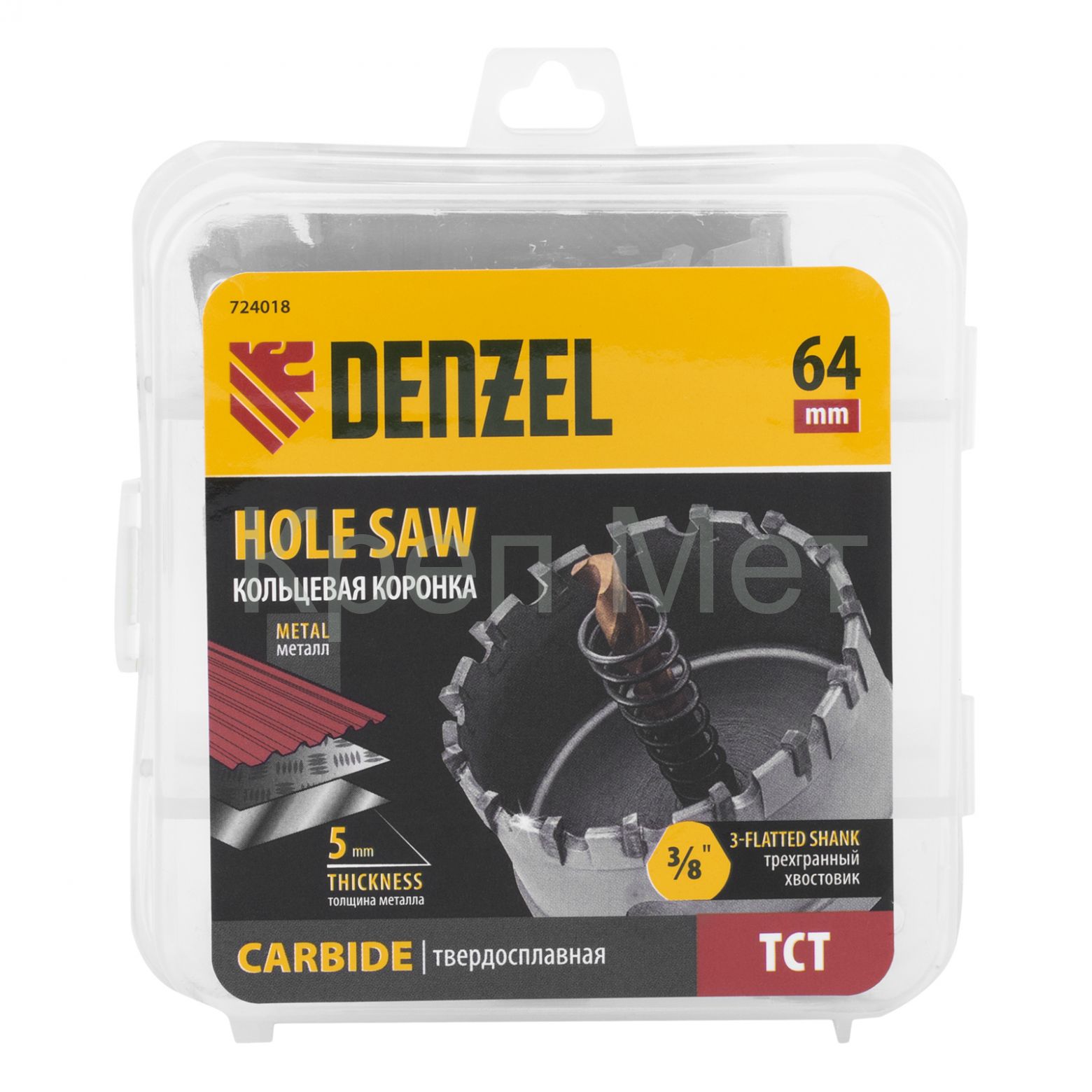 Коронка по металлу твердосплавная, 64 мм Denzel