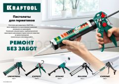 - KRAFTOOL 310мл, 3 сменных сопла, универсальный закрытый пистолет для герметика (06677)
