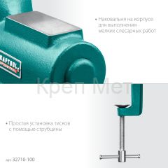 - KRAFTOOL EXPERT 100 мм, в кейсе, универсальные мобильные тиски (32710-100)