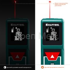 Профессиональный лазерный дальномер Kraftool - высокоточный прибор для быстрого и простого измерения линейных расстояний, площадей и объёмов. Позволяет проводить весь цикл измерений одному человеку, значительно ускоряя выполнение разметочных работ и повышая точность полученных данных. Позволяет создавать дизайнерские проекты напрямую в вашем смартфоне.