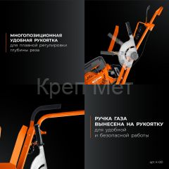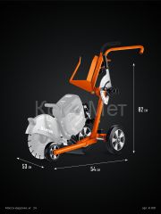 Для бензорезов Kraftool K760-14, K760-16, K770-14, K770-14 H, K770-16, K770-16 H. Применение тележки позволяет выполнять длинные ровные резы с заданной глубиной по прямой, по дуге, рядом с вертикальными поверхностями