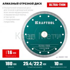 - KRAFTOOL ULTRA-THIN 180х1.6 мм ультратонкий алмазный диск (36685-180)