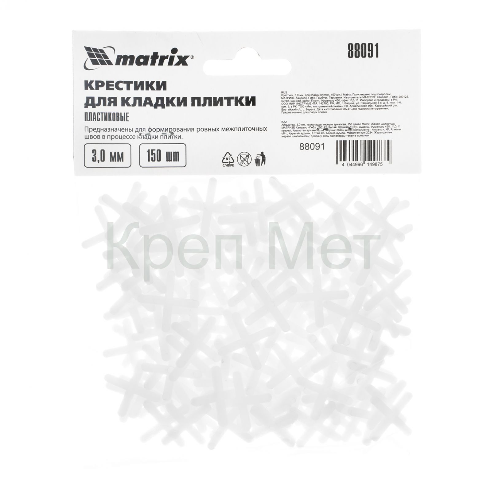 - Крестики, 3.0 мм, для кладки плитки, 150 шт Matrix