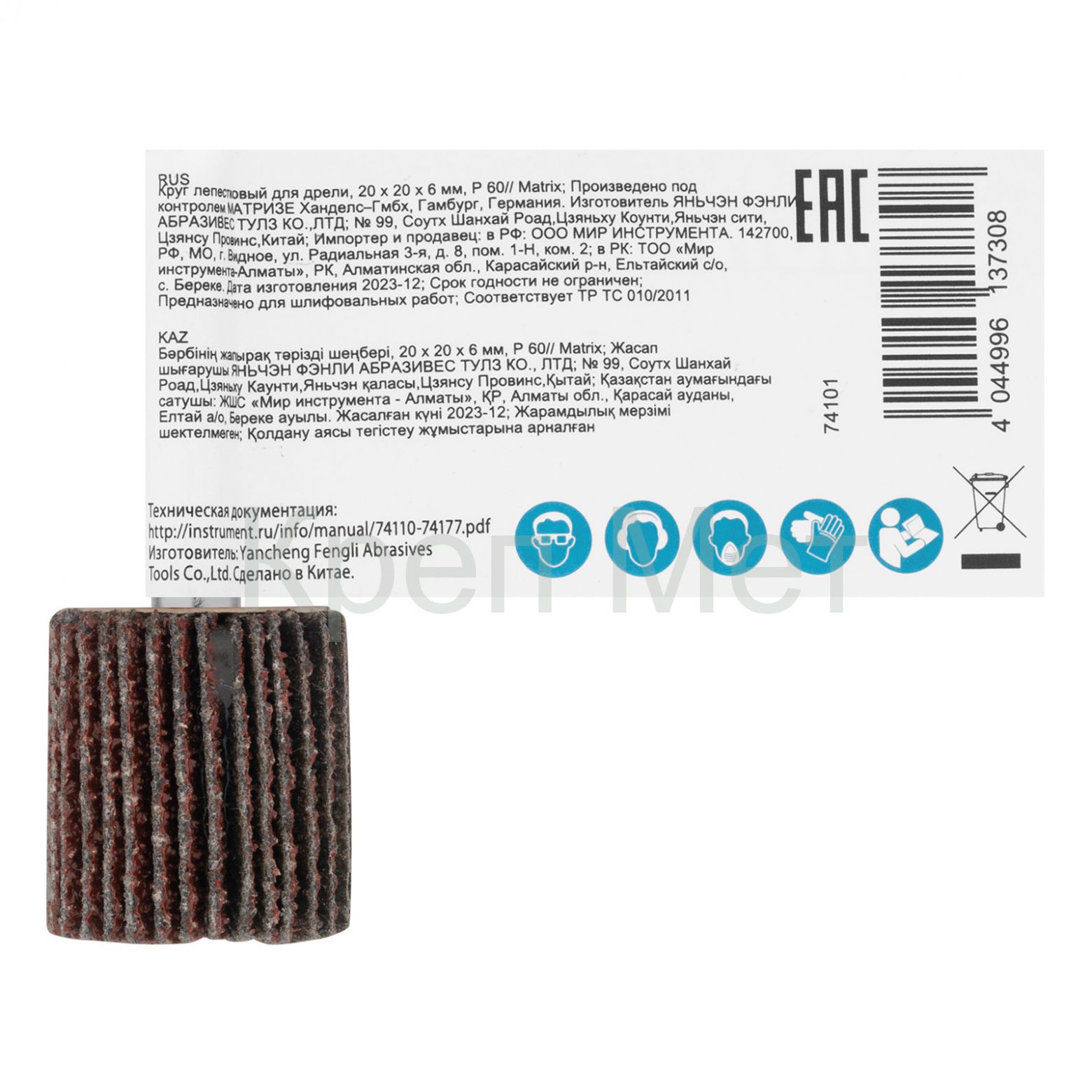 - Круг лепестковый для дрели, 20 х 20 х 6 мм, P 60 Matrix