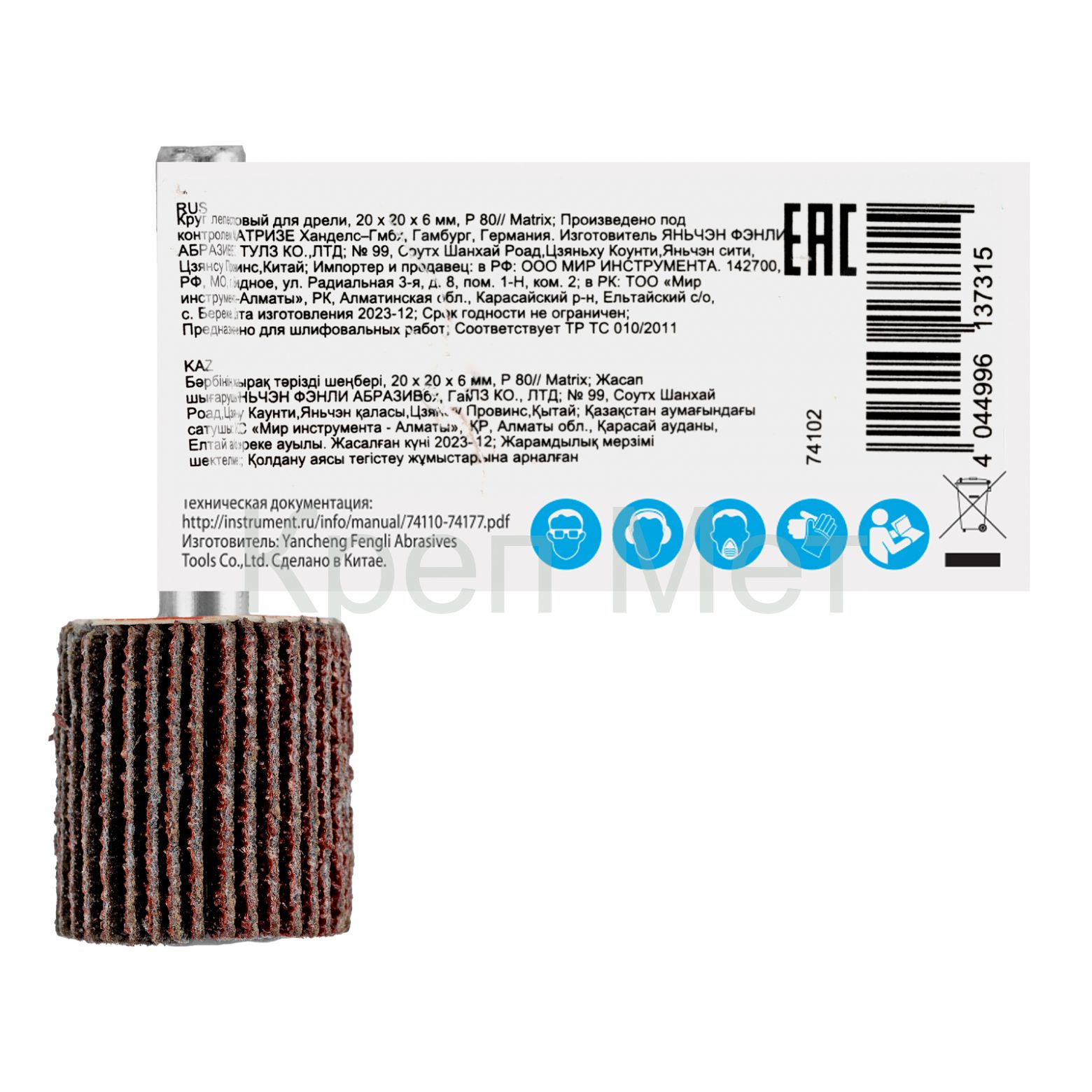 - Круг лепестковый для дрели, 20 х 20 х 6 мм, P 80 Matrix