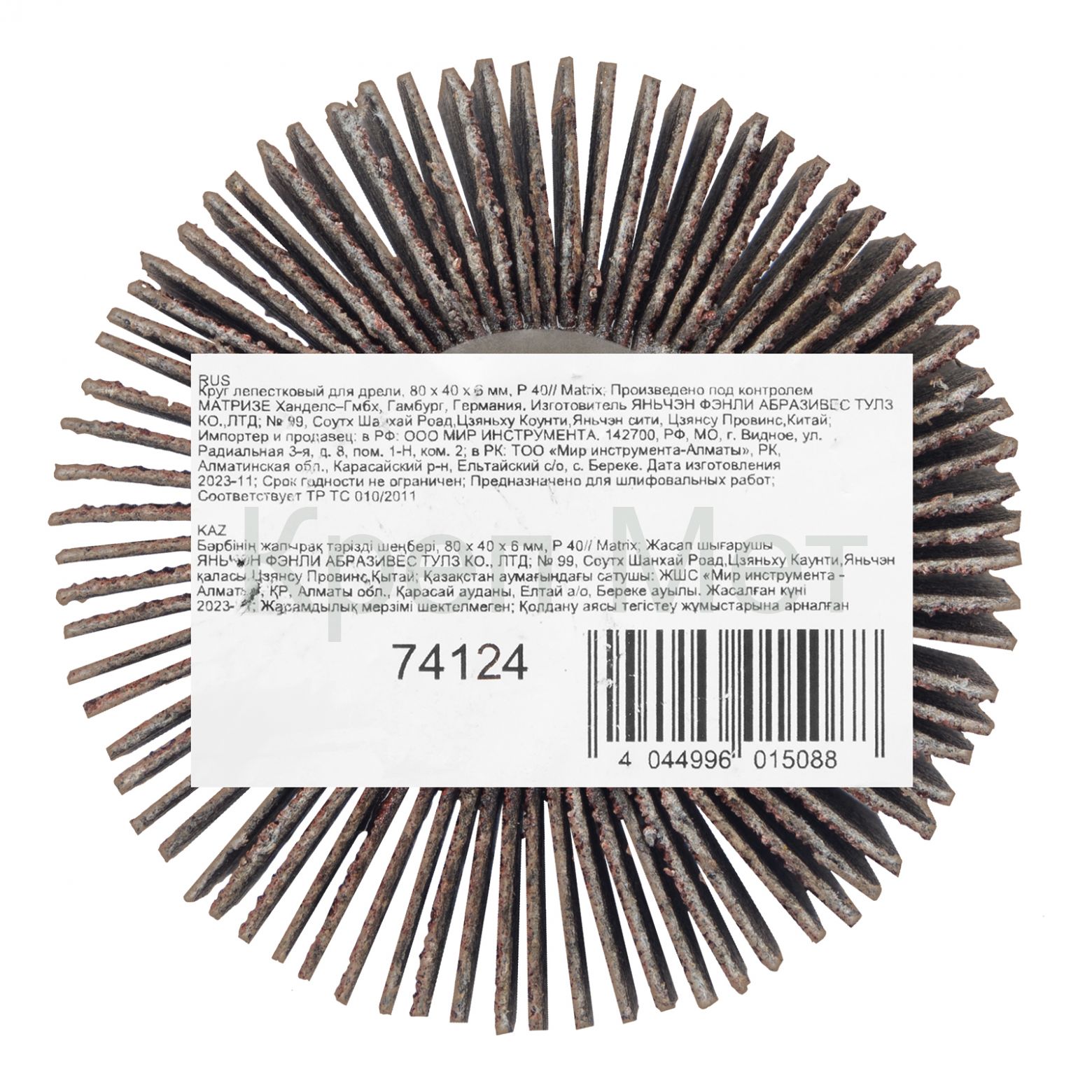 - Круг лепестковый для дрели, 60 х 30 х 6 мм, P 80 Matrix