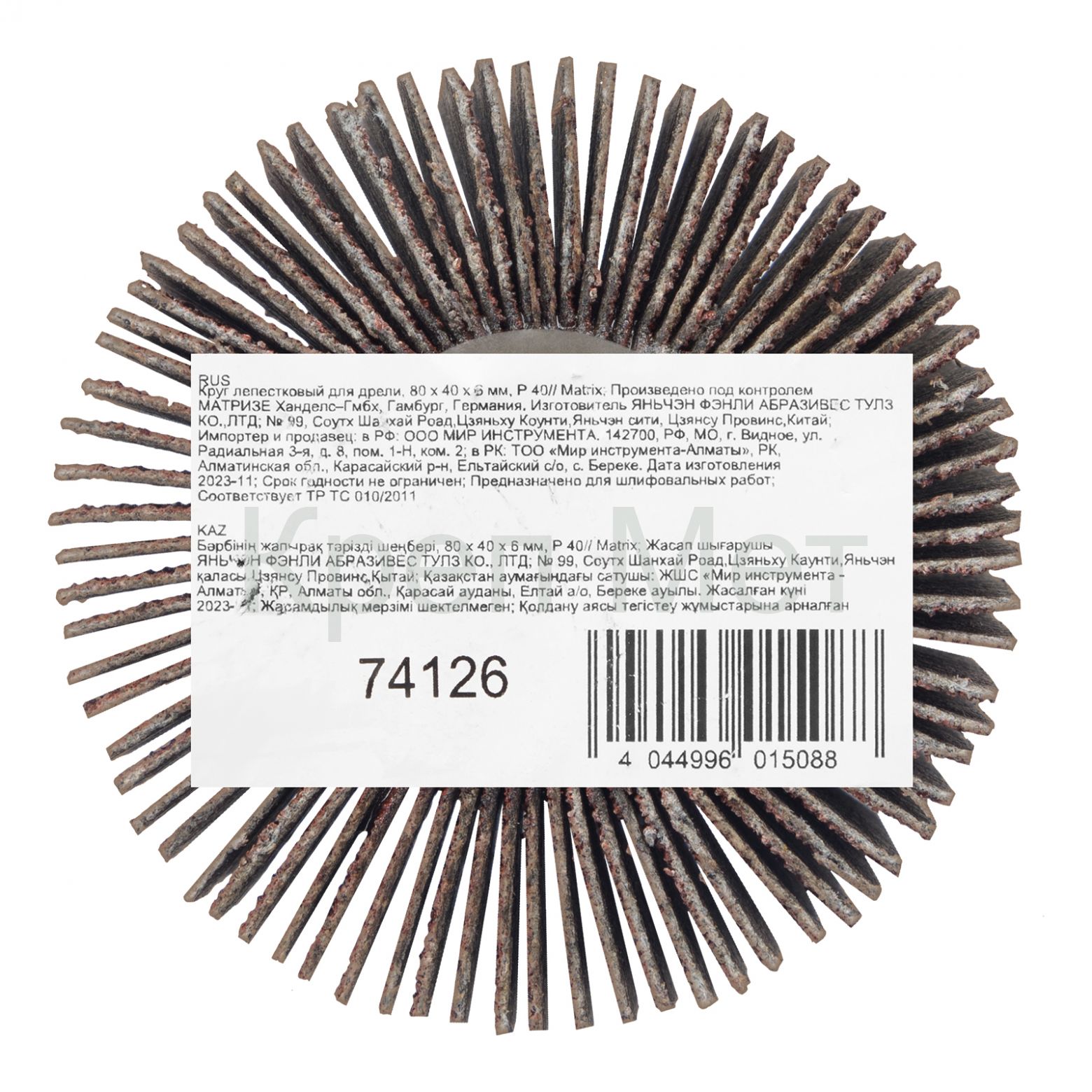 - Круг лепестковый для дрели, 60 х 30 х 6 мм, Р 120 Matrix