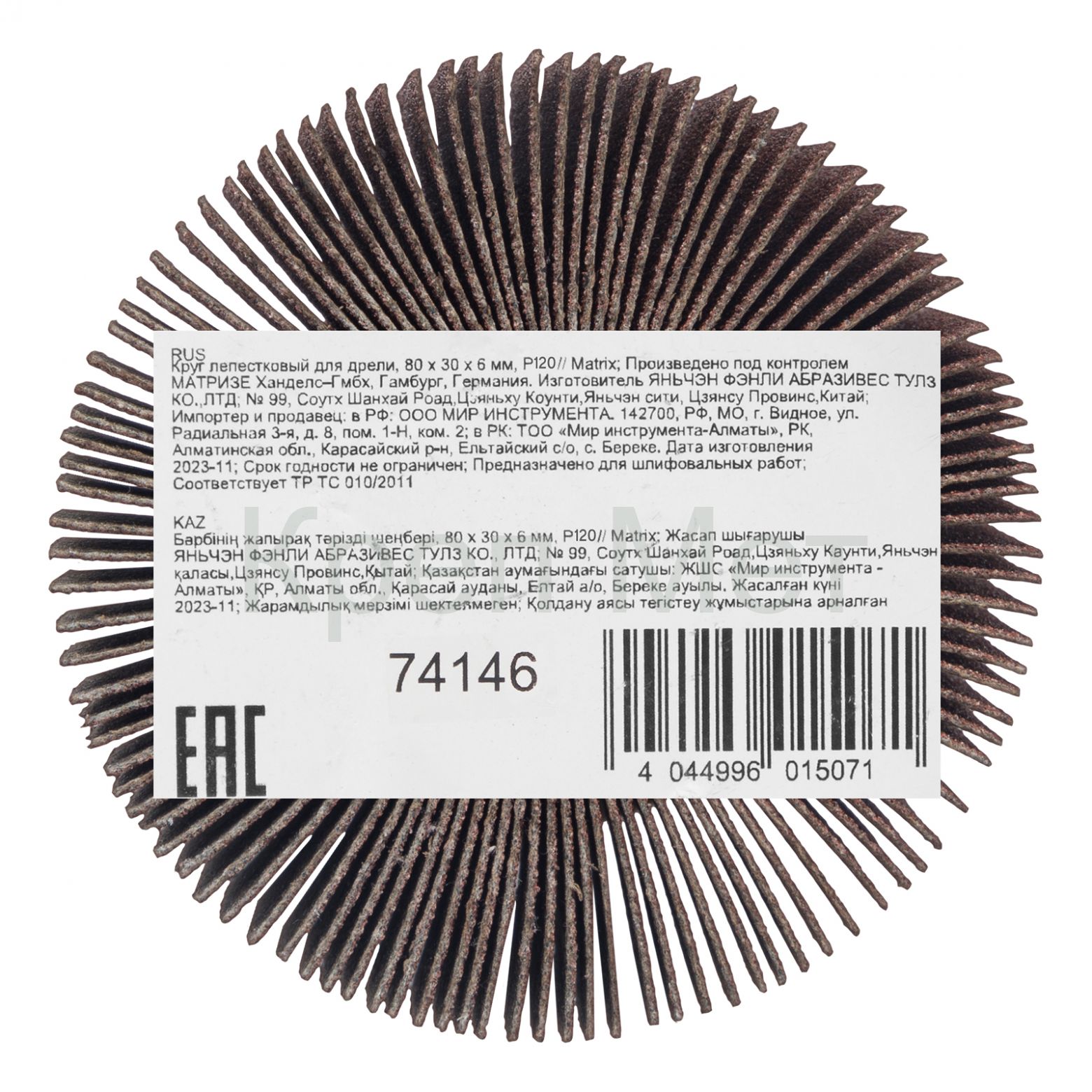 - Круг лепестковый для дрели, 80 х 30 х 6 мм, P 120 Matrix