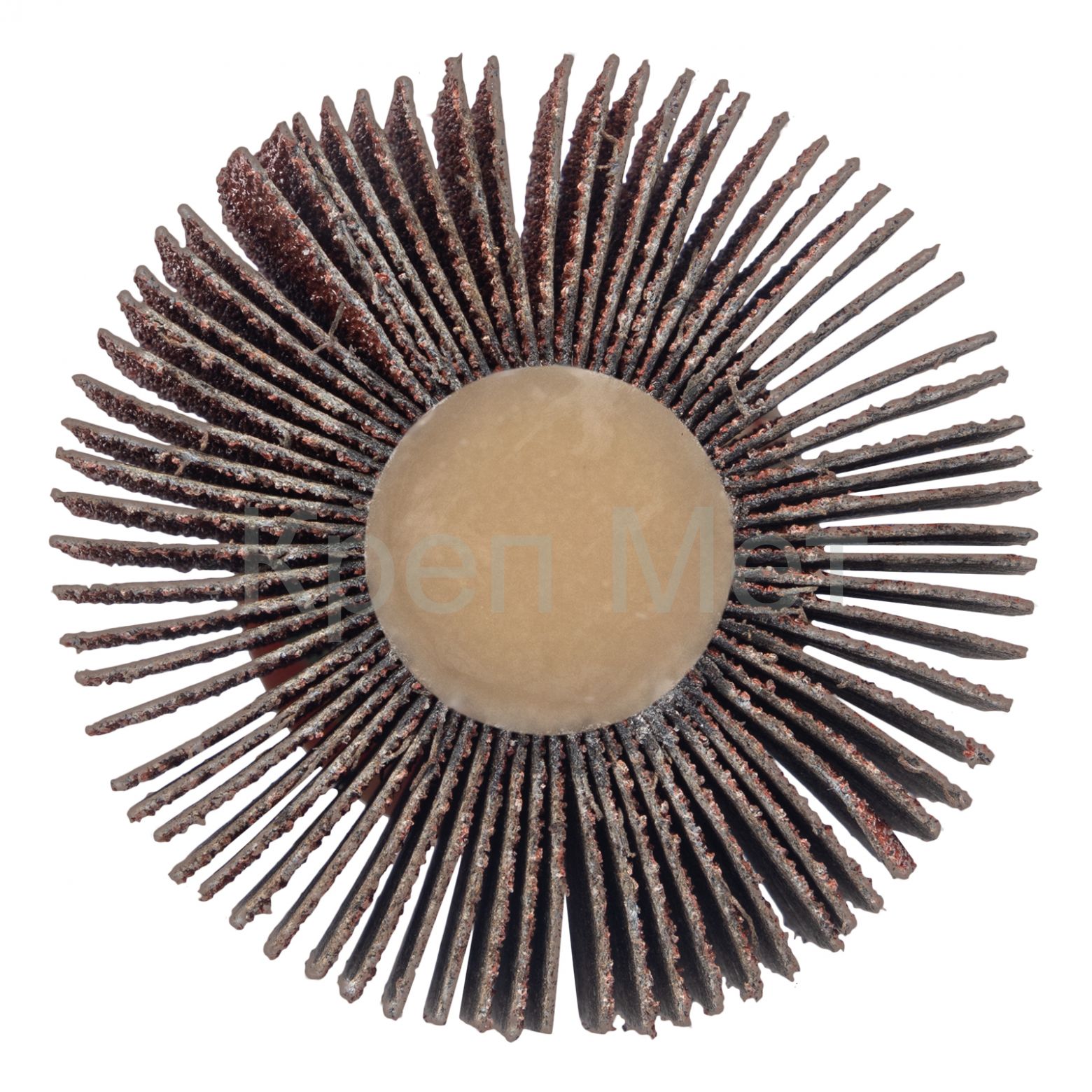 - Надежность — лепестки из прочной х/б ткани прикреплены к оправке при помощи бакелитовой смолы, поэтому круг устойчив к трению и давлению.
