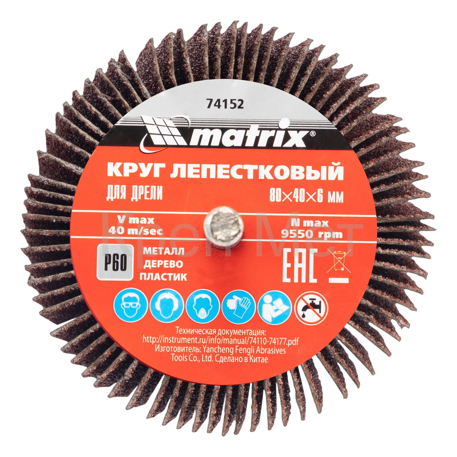 - Круг лепестковый для дрели, 80 х 40 х 6 мм, P 60 Matrix
