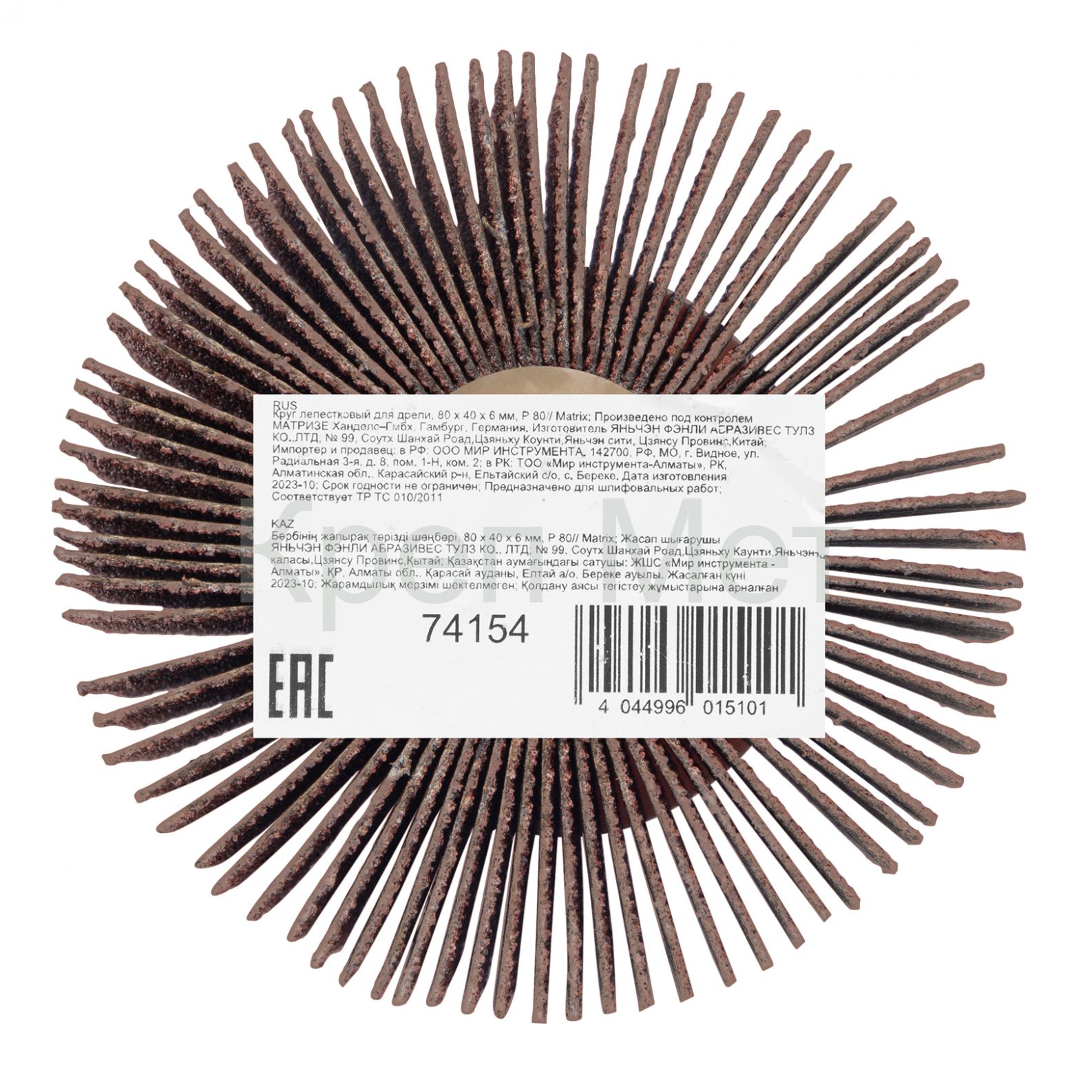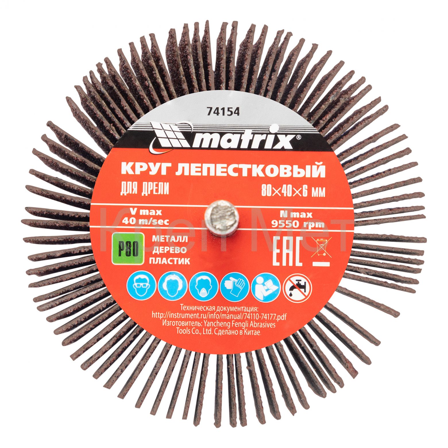 - Круг лепестковый для дрели, 80 х 40 х 6 мм, P 80 Matrix