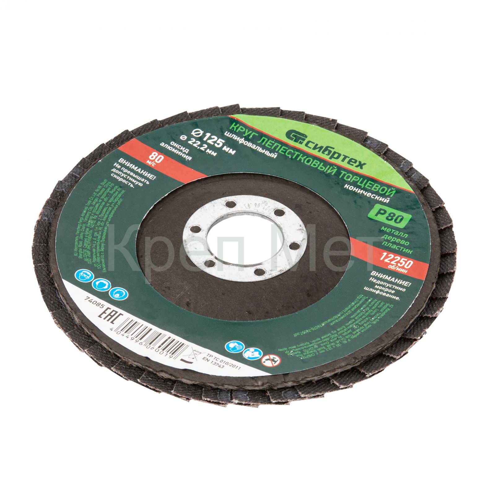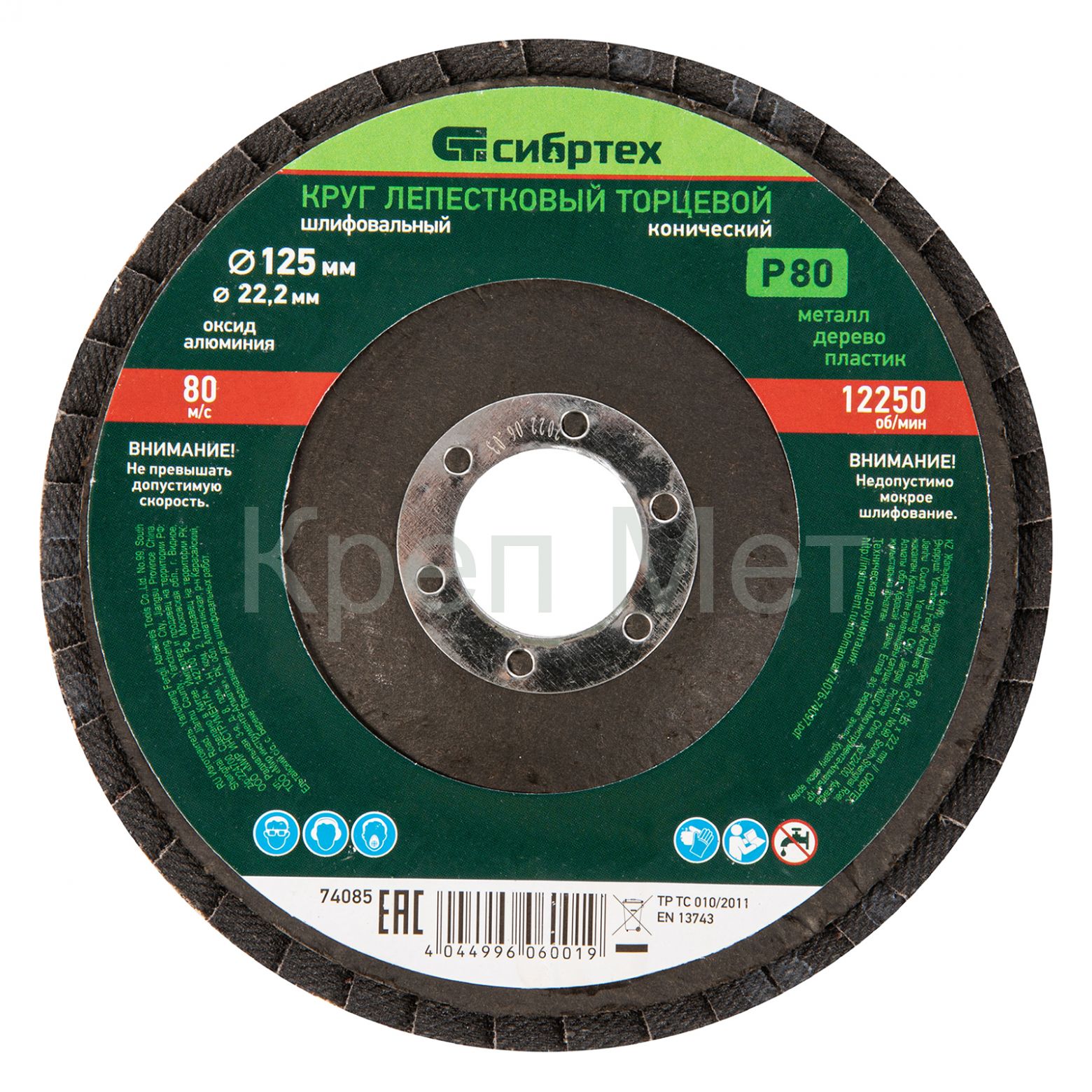 Круг лепестковый торцевой, конический, Р 80, 125 х 22.2 мм Сибртех