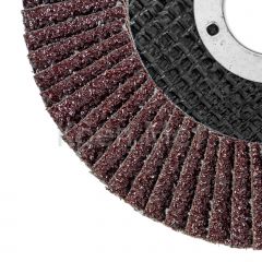 - Лепестки с абразивом зафиксированы на основе с помощью синтетической смолы, что гарантирует надежность всего круга.