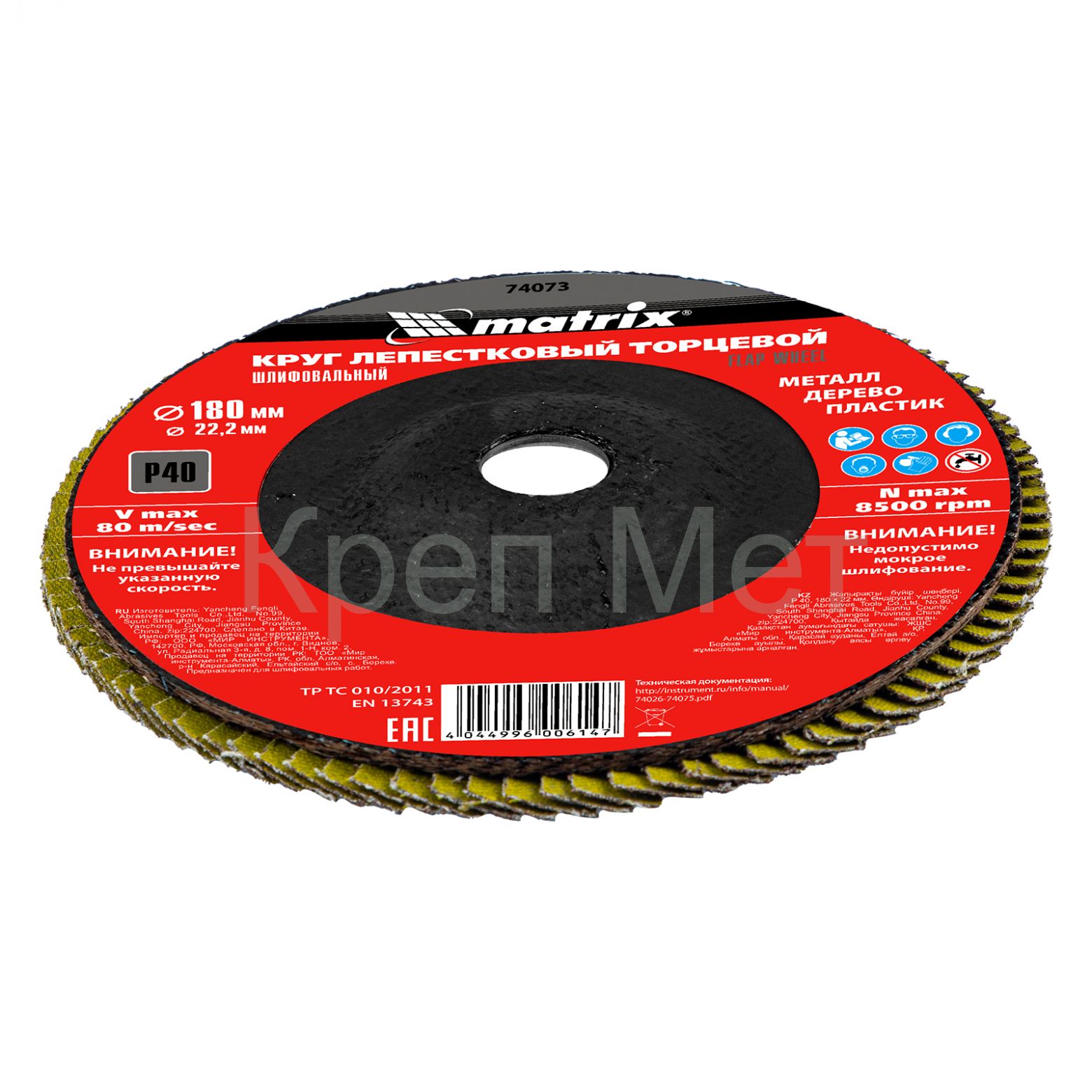 Круг лепестковый торцевой, P 40, 180 х 22.2 мм Matrix
