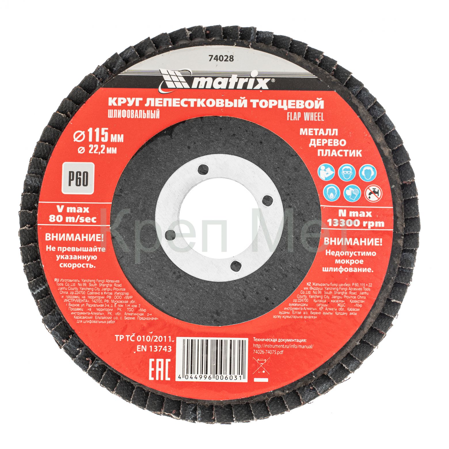 Круг лепестковый торцевой, P 60, 115 х 22.2 мм Matrix