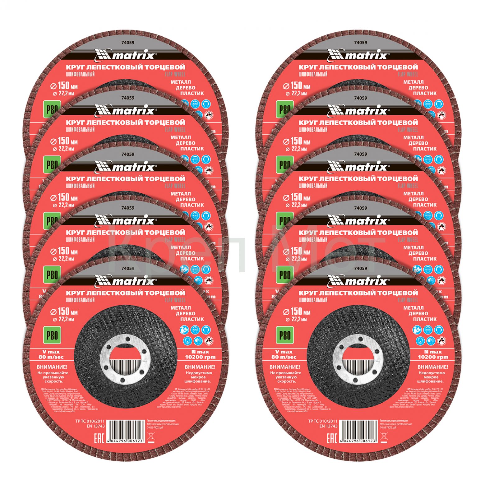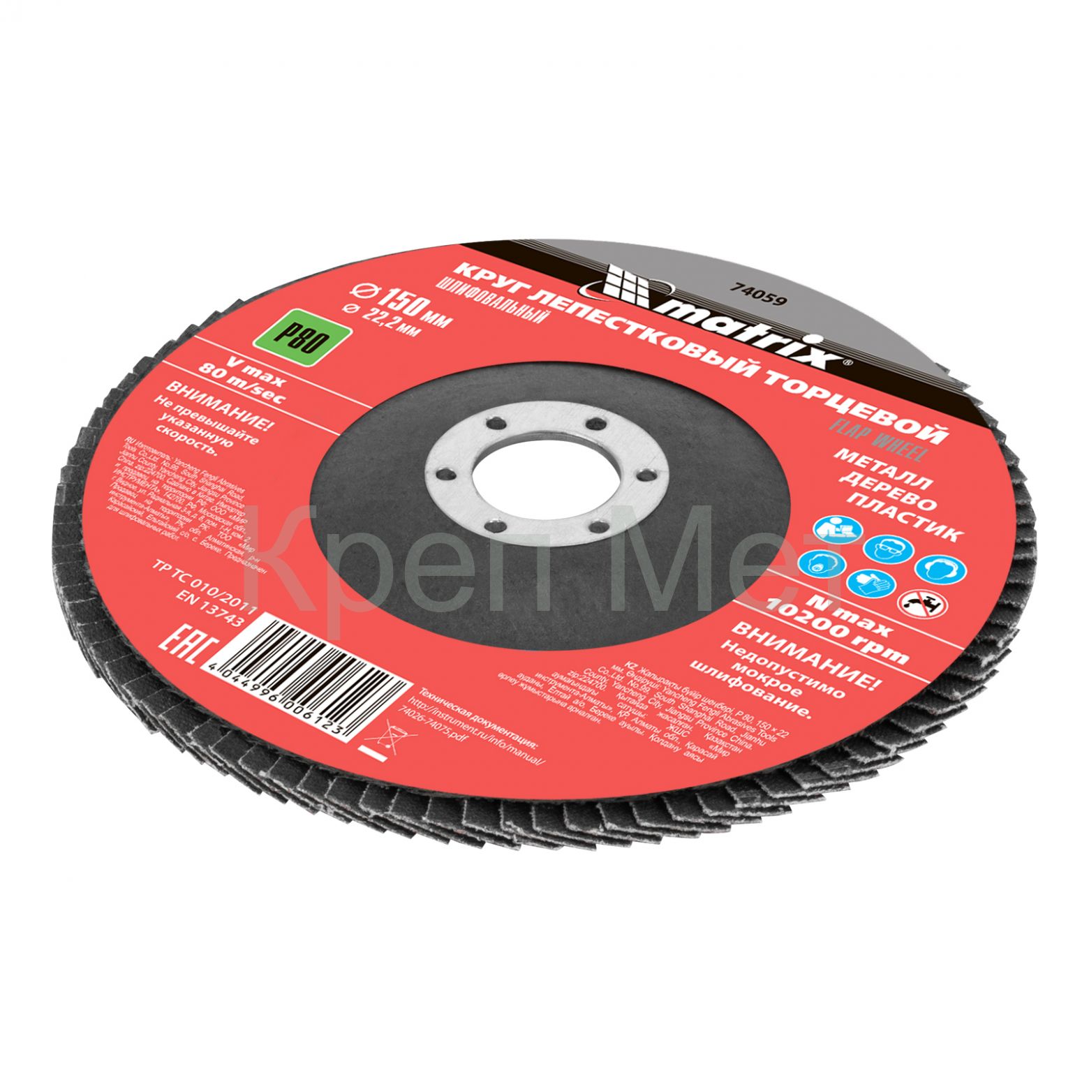 - Круг лепестковый торцевой, P 80, 150 х 22.2 мм Matrix