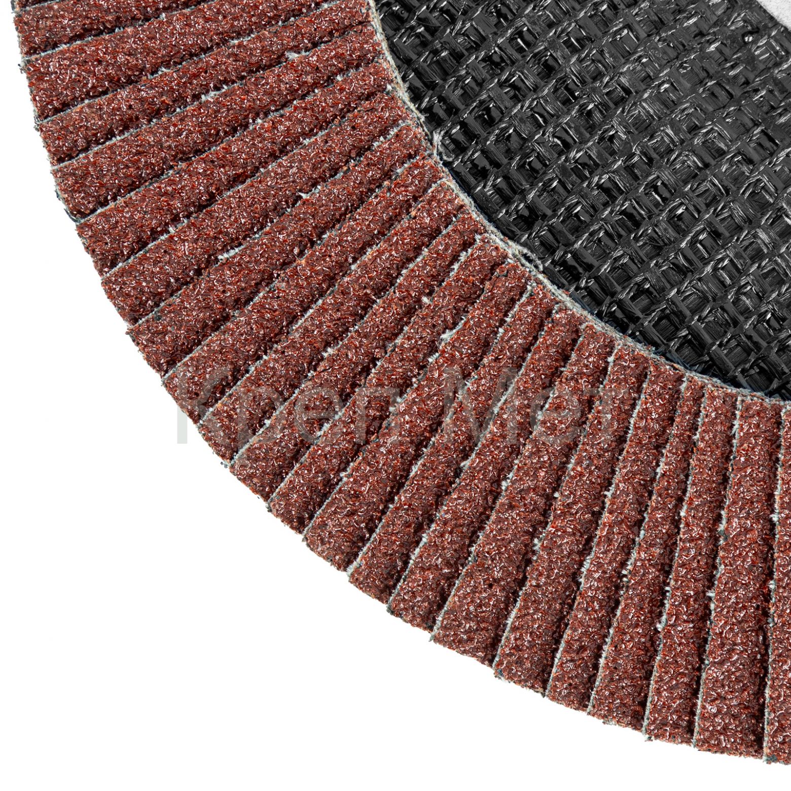 - Лепестки с абразивом зафиксированы на основе с помощью синтетической смолы, что гарантирует надежность всего круга.