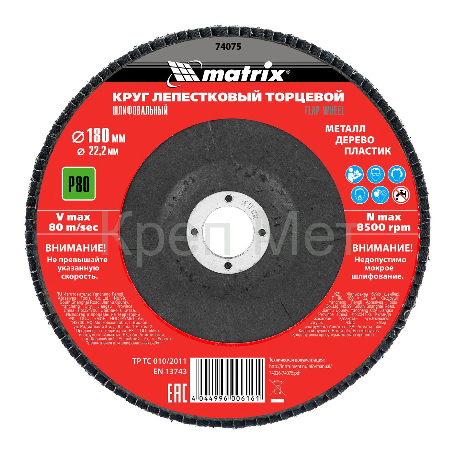 Круг лепестковый торцевой, P 80, 180 х 22.2 мм Matrix