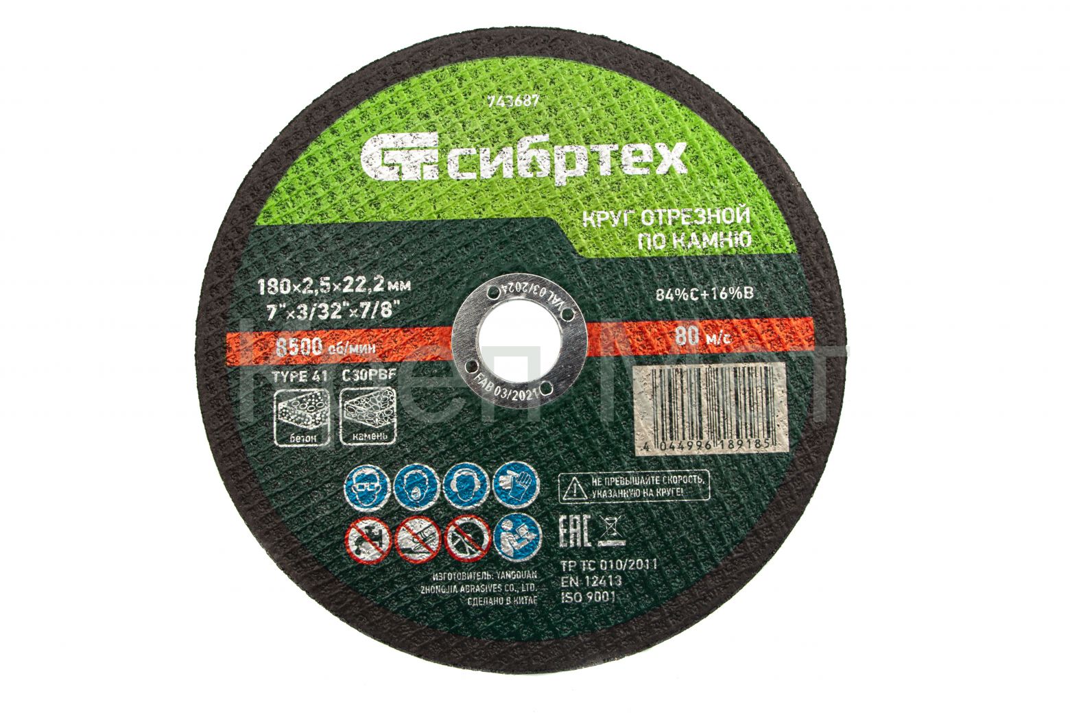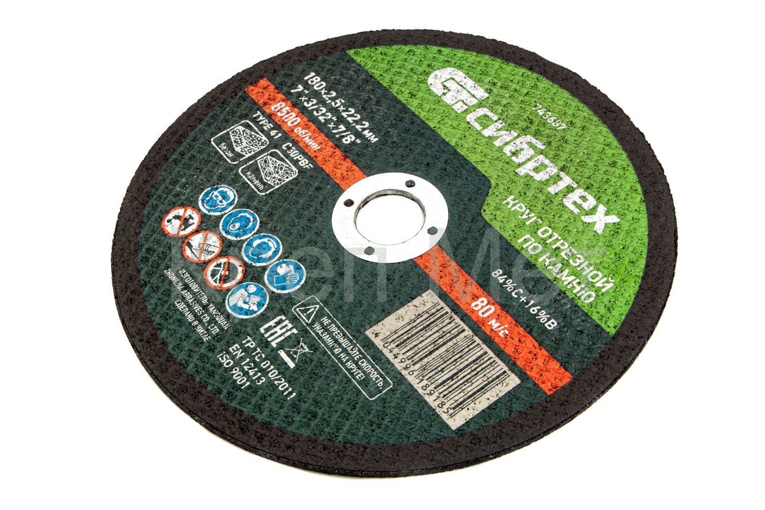 - Круг отрезной по камню, 180 х 2,5 х 22,2 мм Сибртех