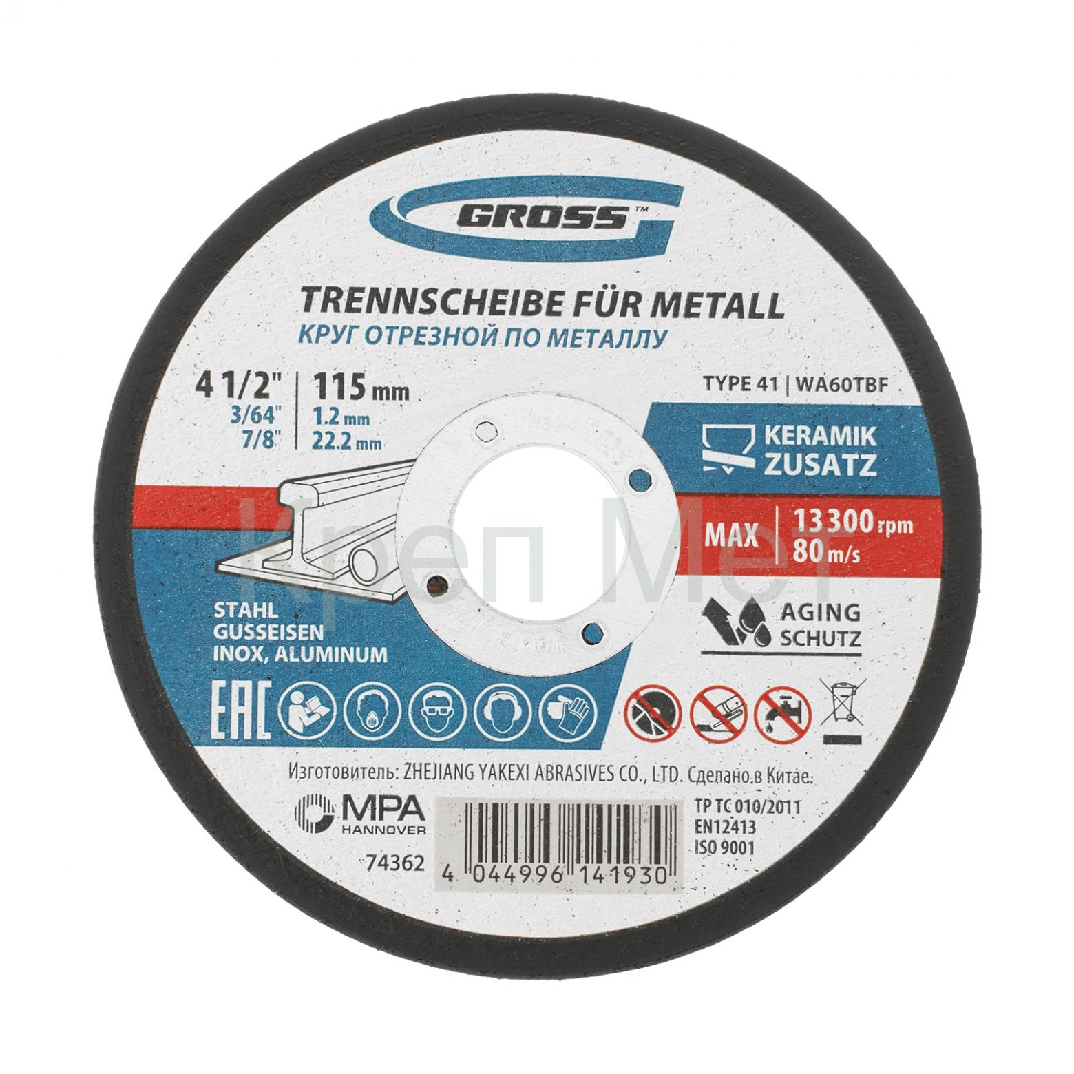 Круг отрезной по металлу, 115 х 1.2 х 22 мм Gross