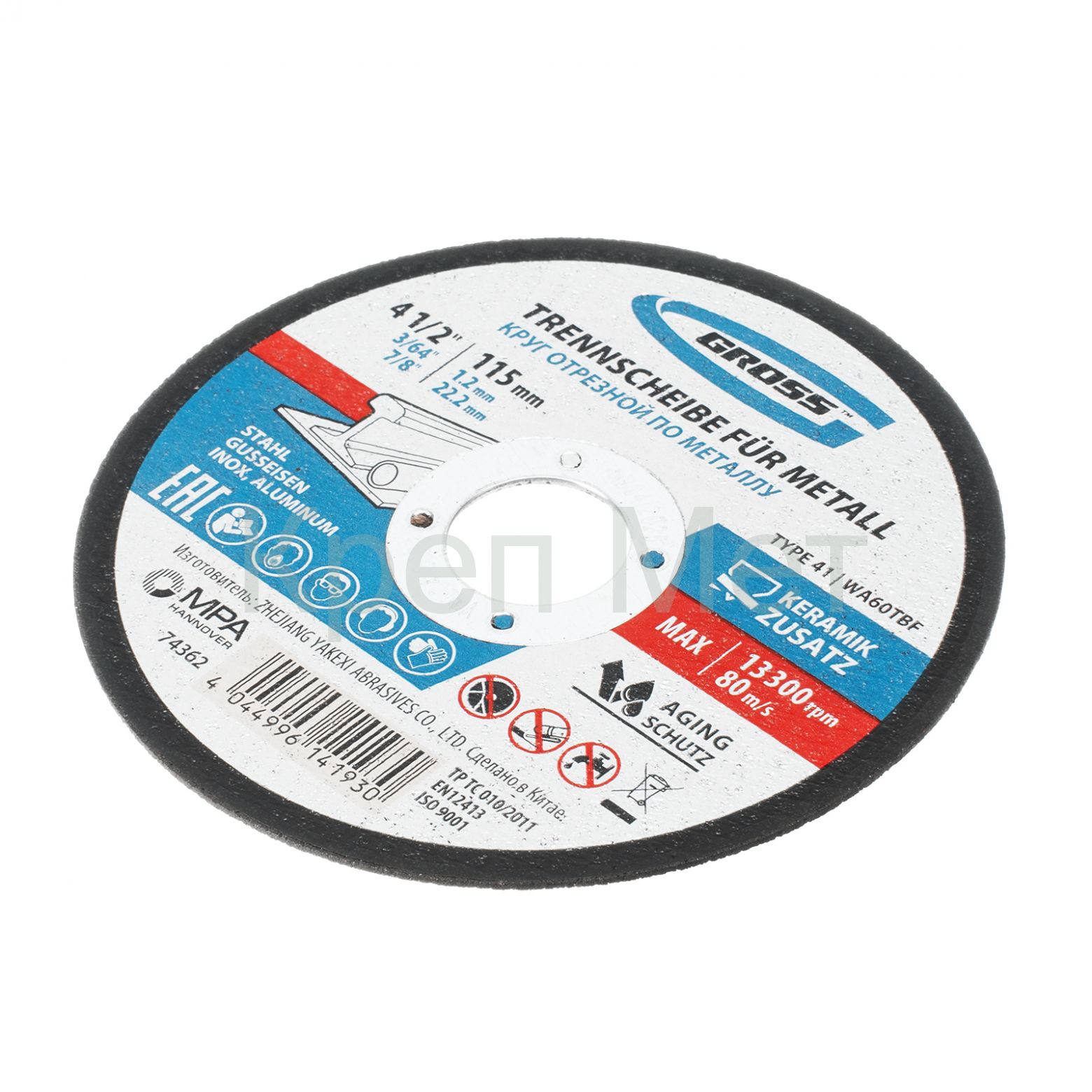 - Круг отрезной по металлу, 115 х 1.2 х 22 мм Gross