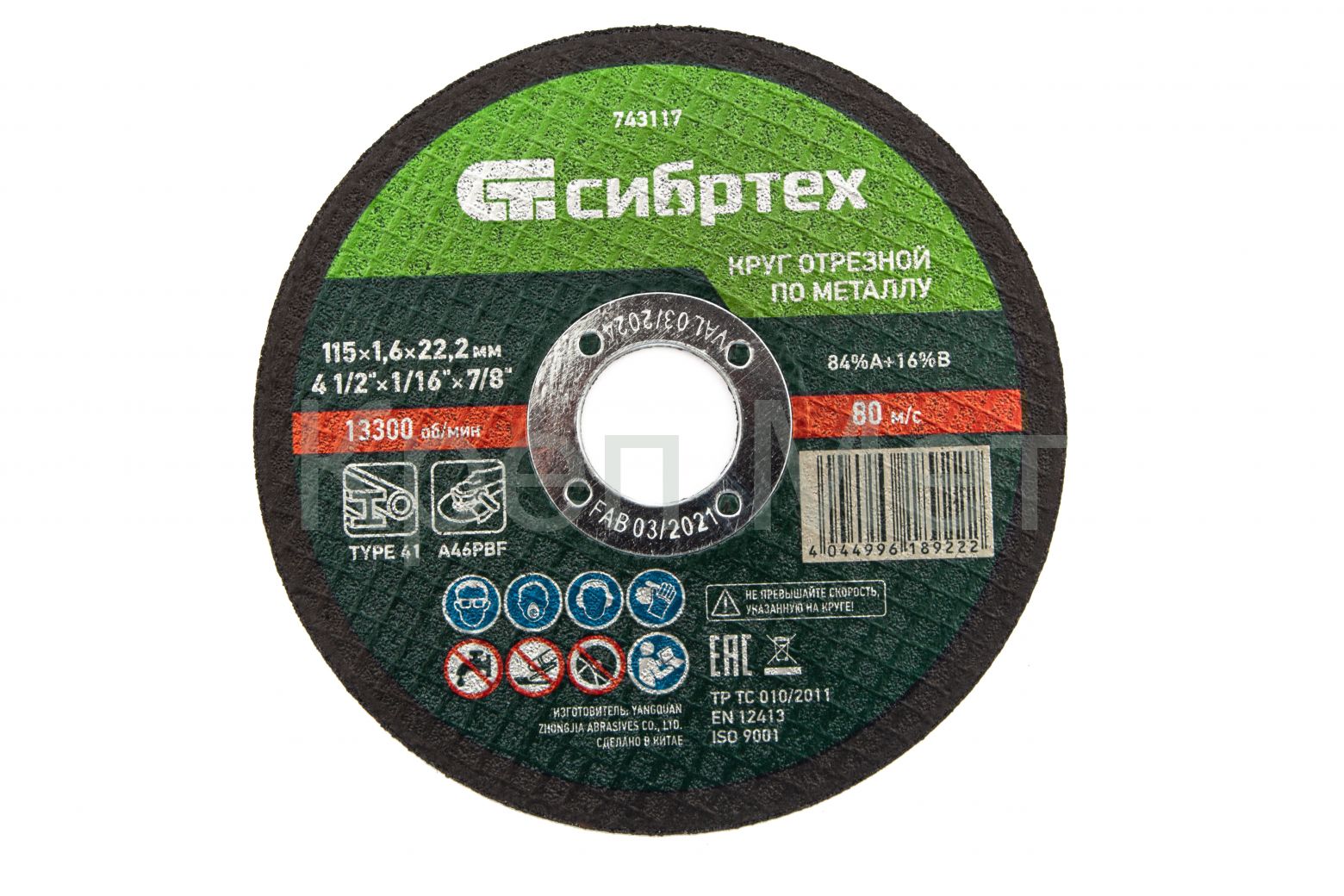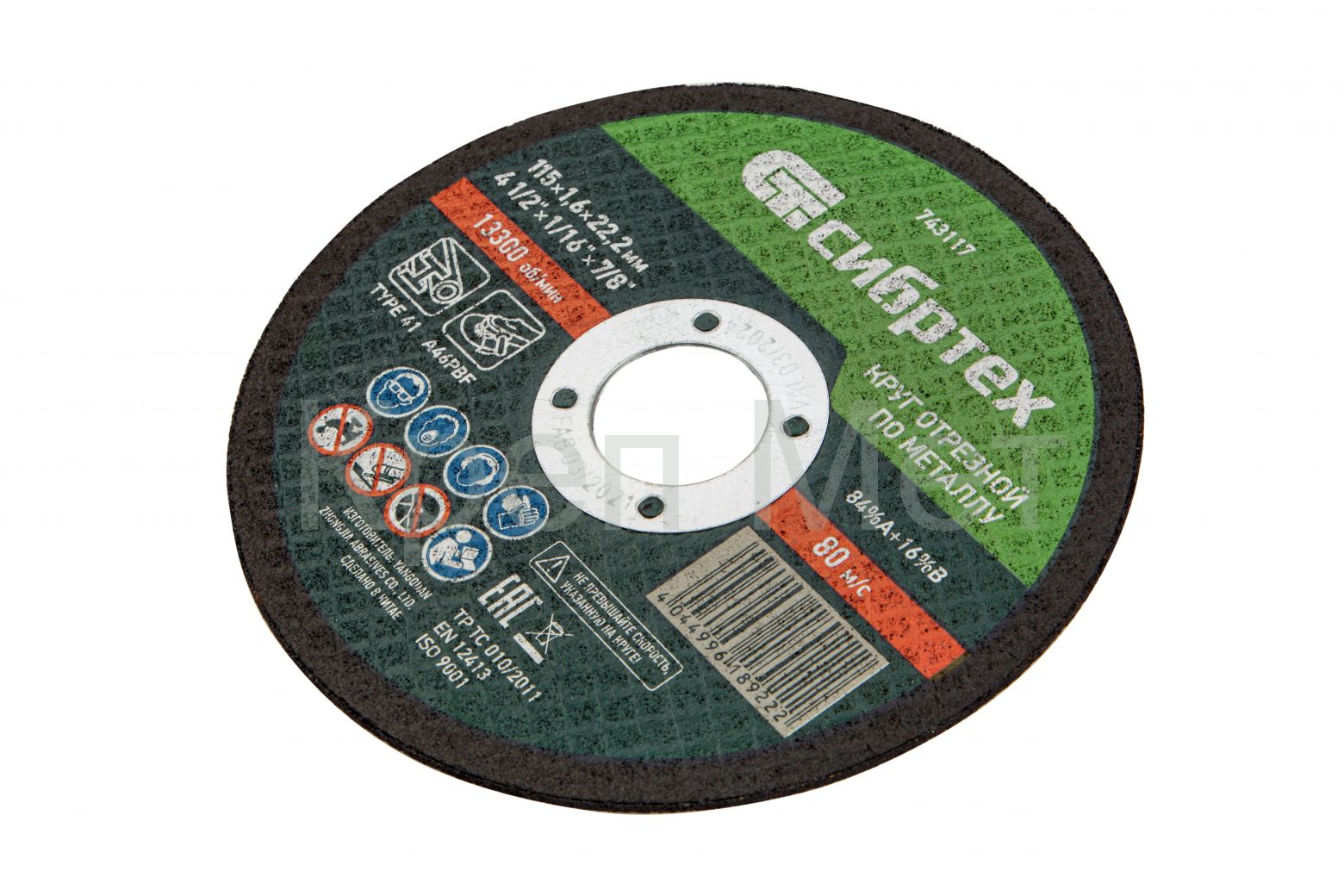 - Круг отрезной по металлу, 115 х 1,6 х 22,2 мм Сибртех