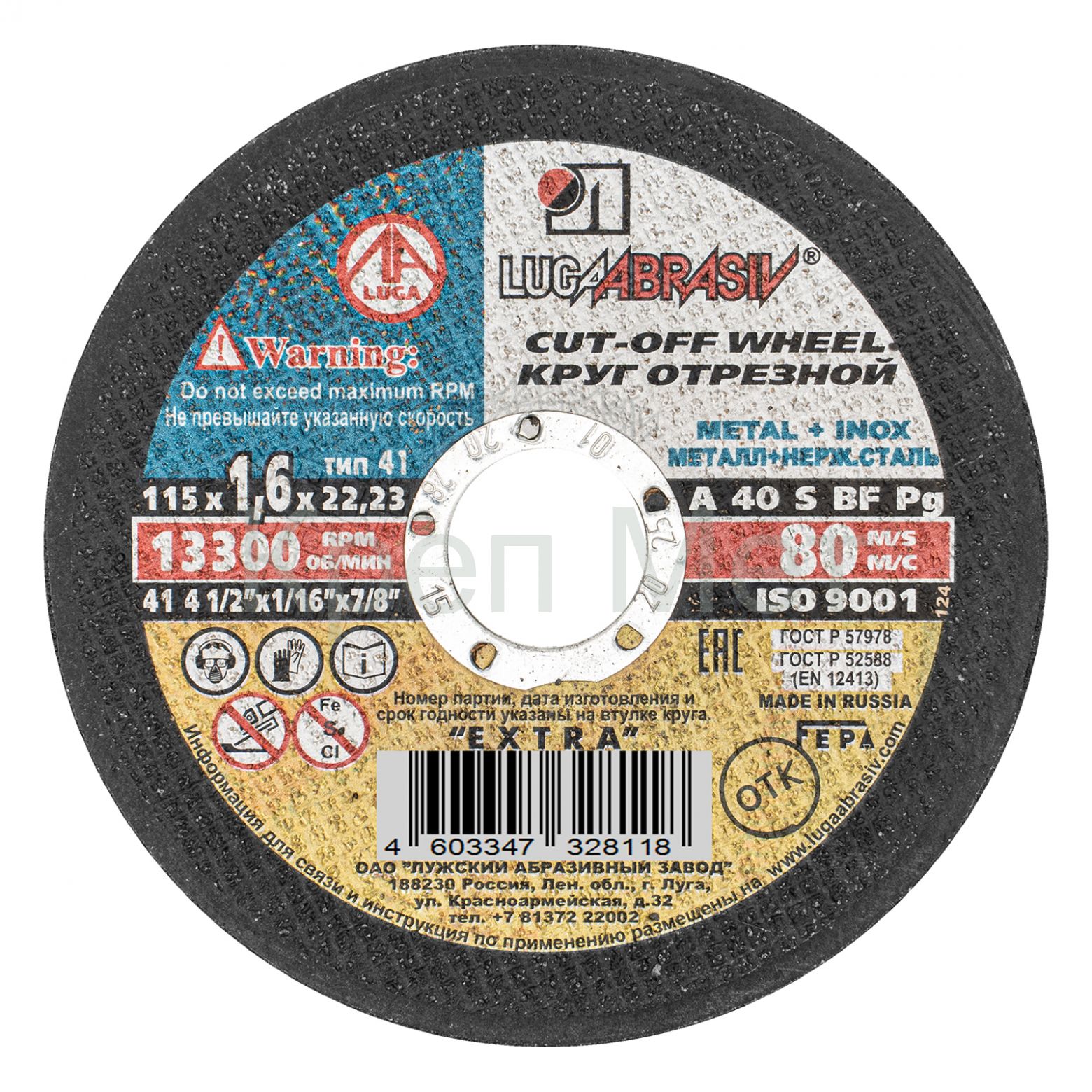Круг отрезной по металлу, 115 х 1.6 х 22 мм "Луга"