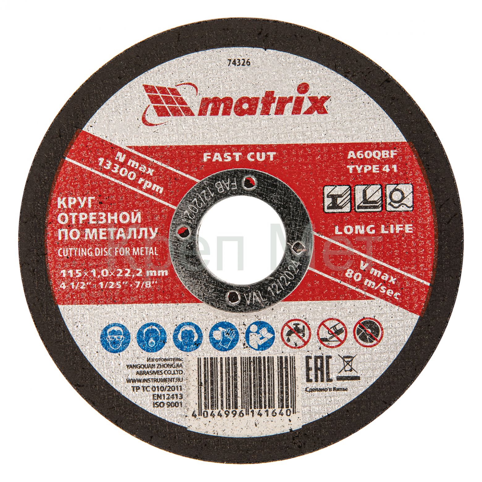 - Круг отрезной по металлу, 115 х 1 х 22 мм Matrix