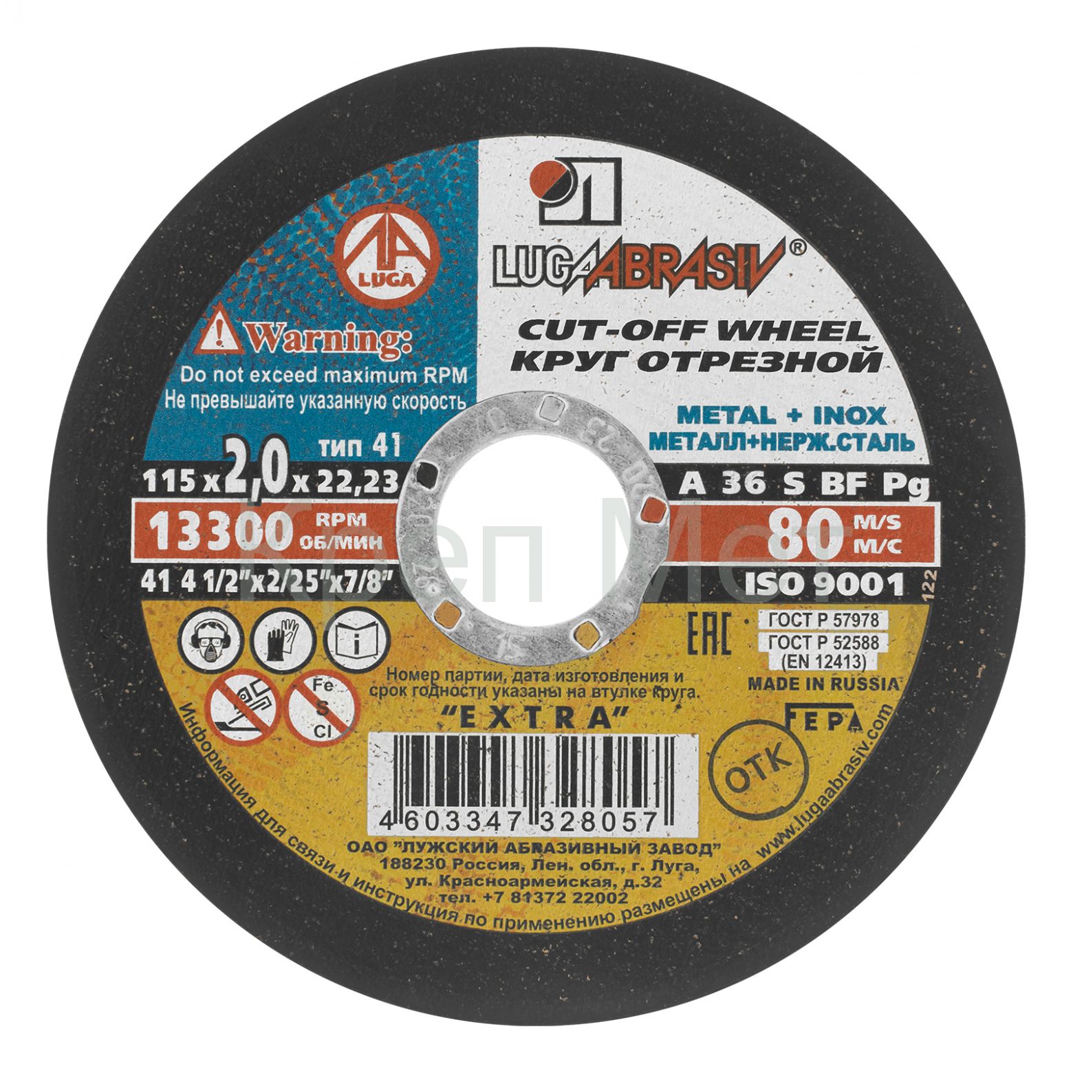 Круг отрезной по металлу, 115 х 2.0 х 22 мм "Луга"