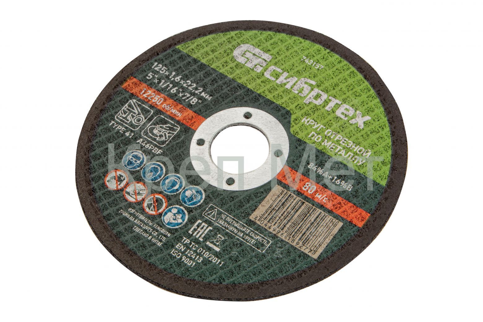 Круг отрезной по металлу, 125 х 1,6 х 22,2 мм Сибртех