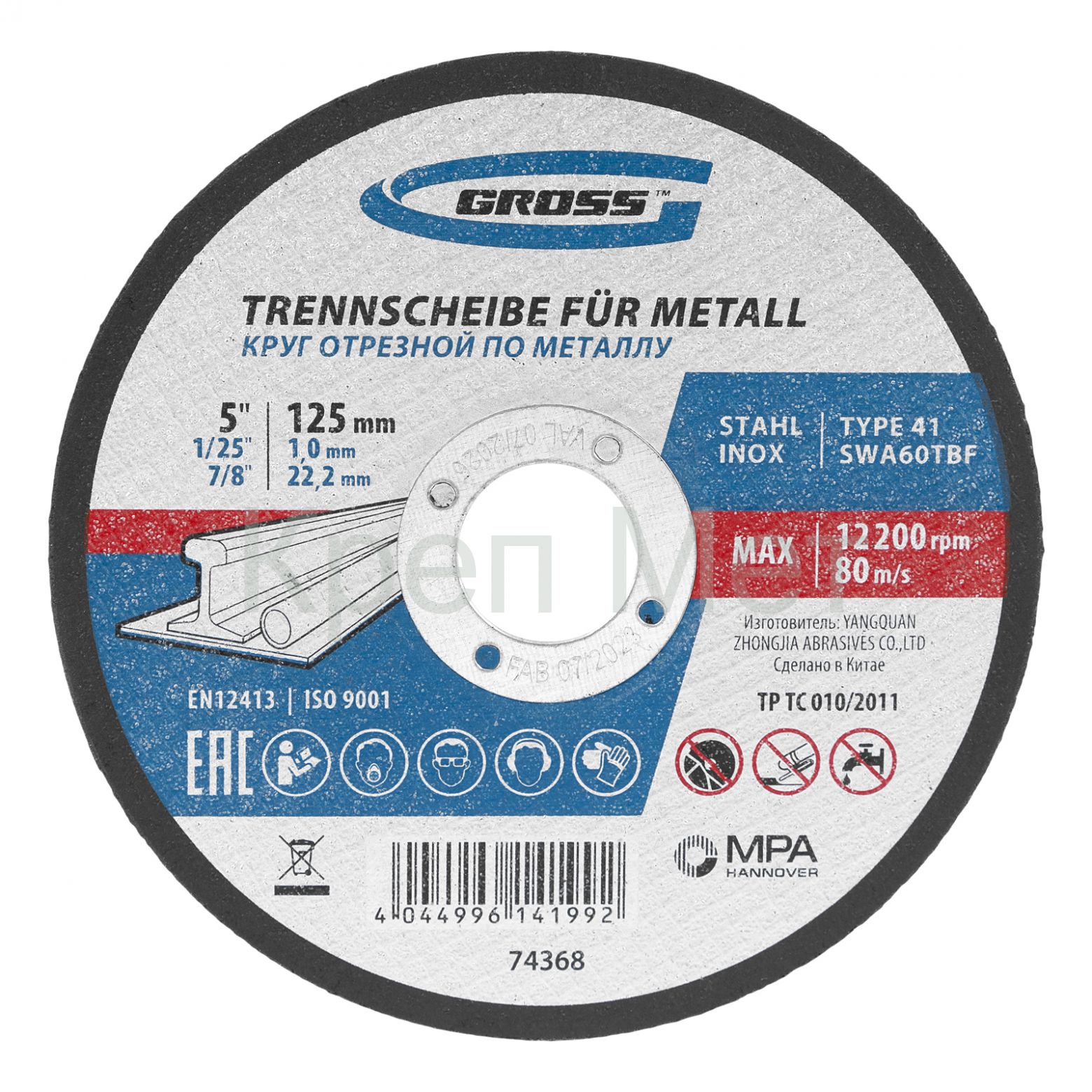 - Круг отрезной по металлу, 125 х 1 х 22 мм Gross