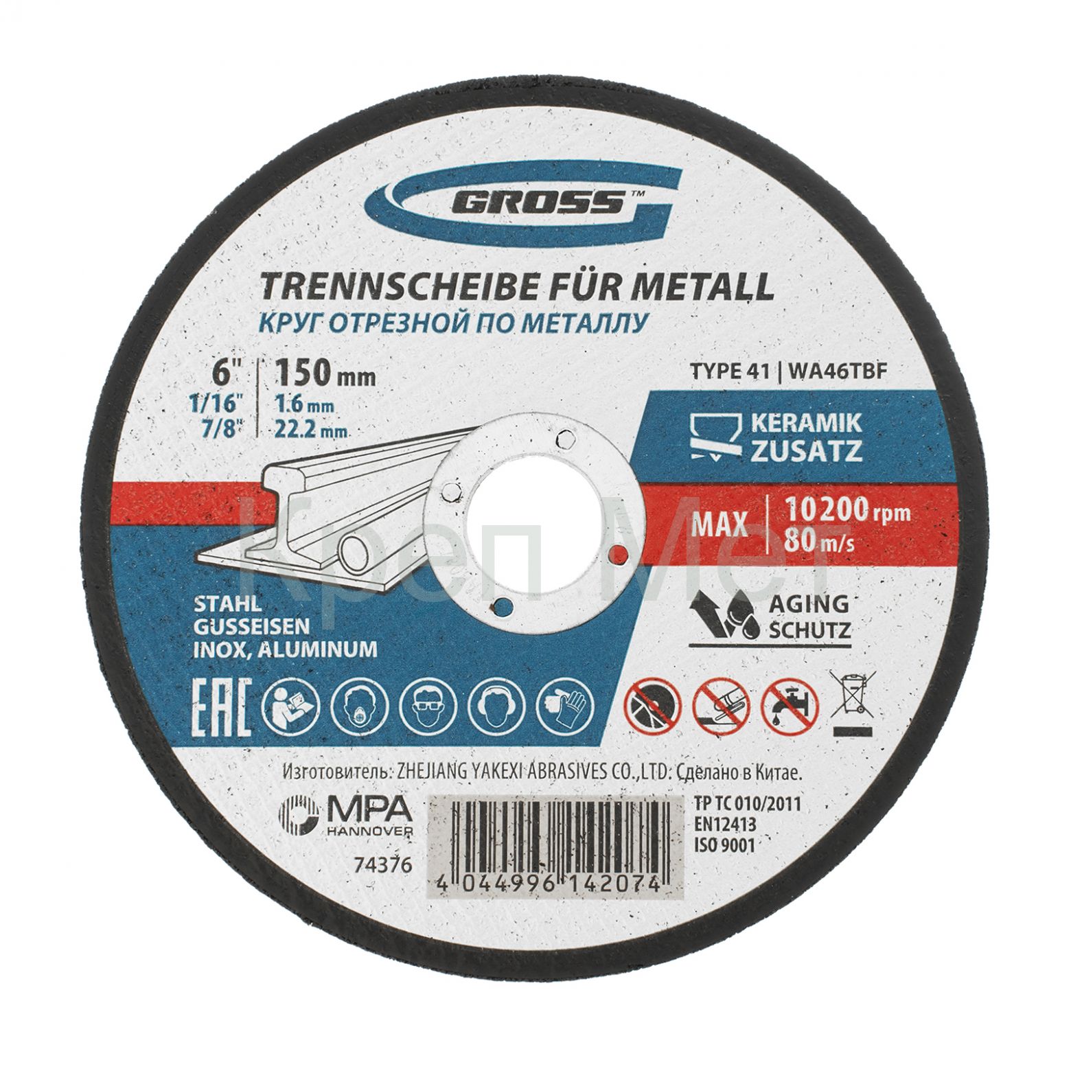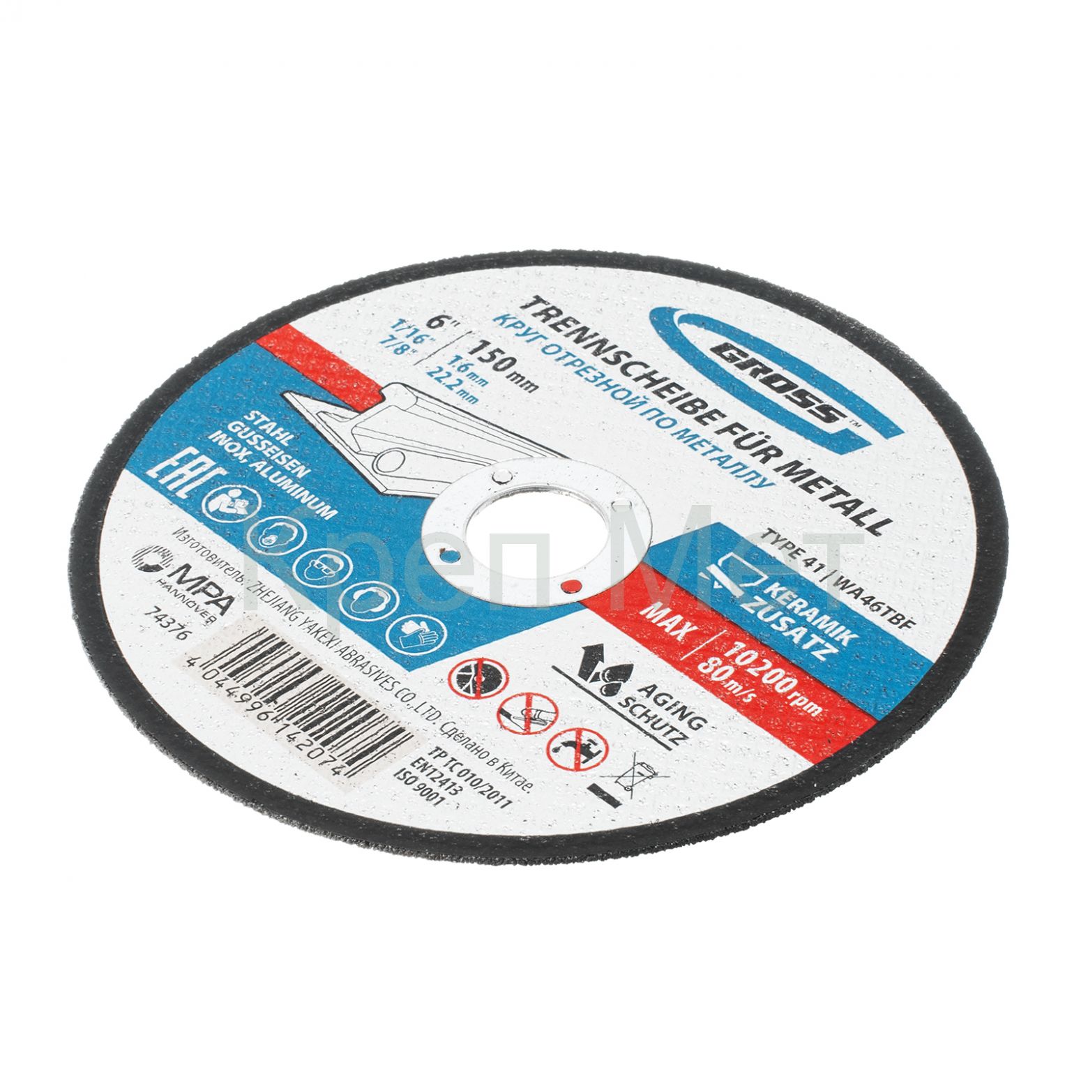 - Круг отрезной по металлу, 150 х 1.6 х 22.2 мм Gross