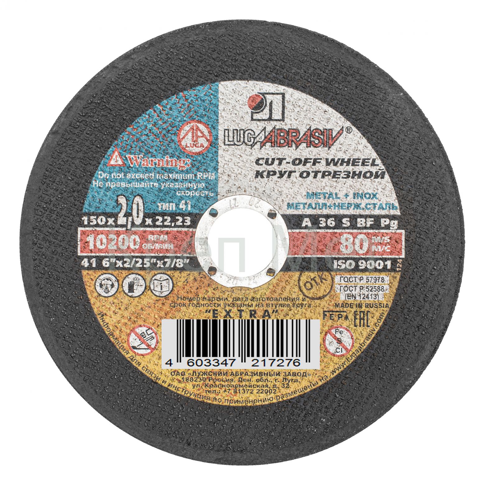 - Круг отрезной по металлу, 150 х 2.0 х 22 мм "Луга"