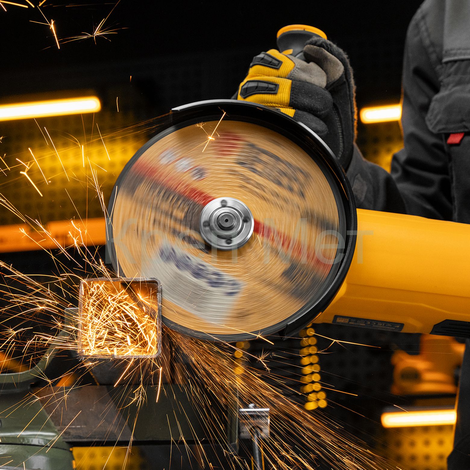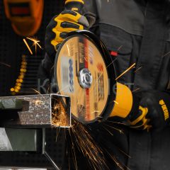 - Высокий ресурс — благодаря толщине 2,5 мм и средней по плотности структуре круг стабильно режет сталь даже при больших объемах работ.
