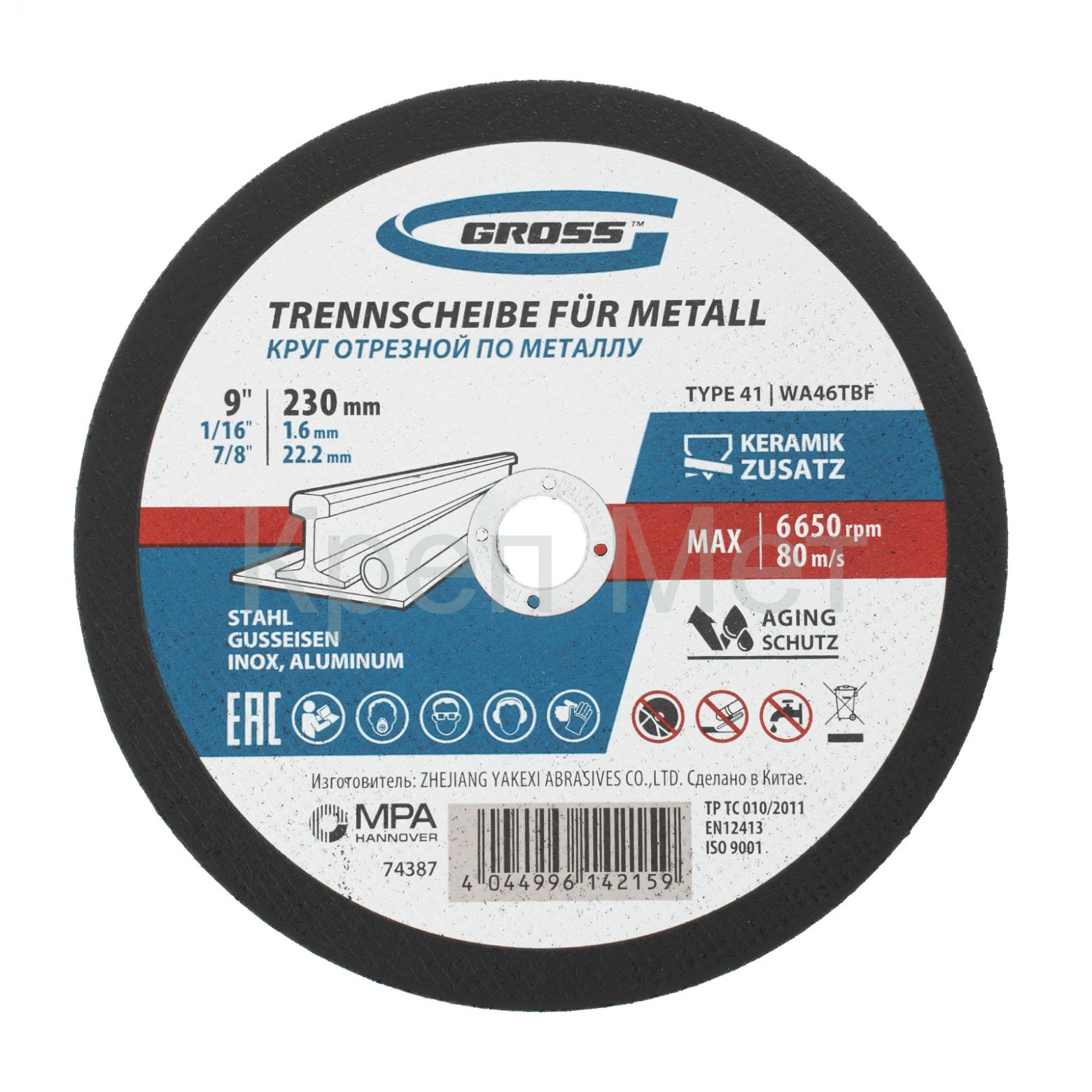 Круг отрезной по металлу, 230 х 1.6 х 22.2 мм Gross