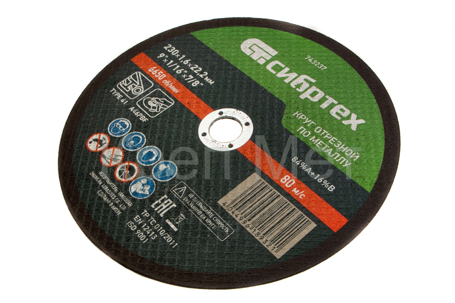 - Круг отрезной по металлу, 230 х 1,6 х 22,2 мм Сибртех