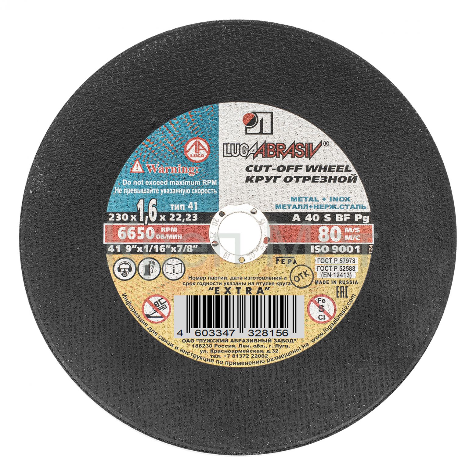 Круг отрезной по металлу, 230 х 1.6 х 22 мм "Луга"