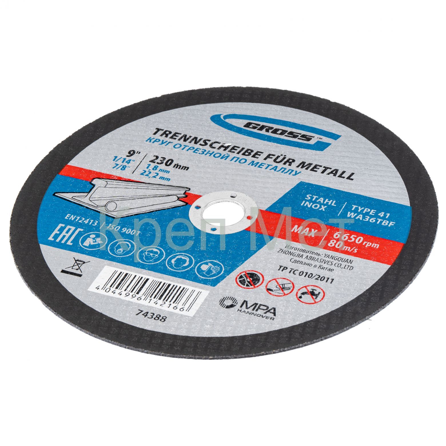- Круг отрезной по металлу, 230 х 1.8 х 22 мм Gross