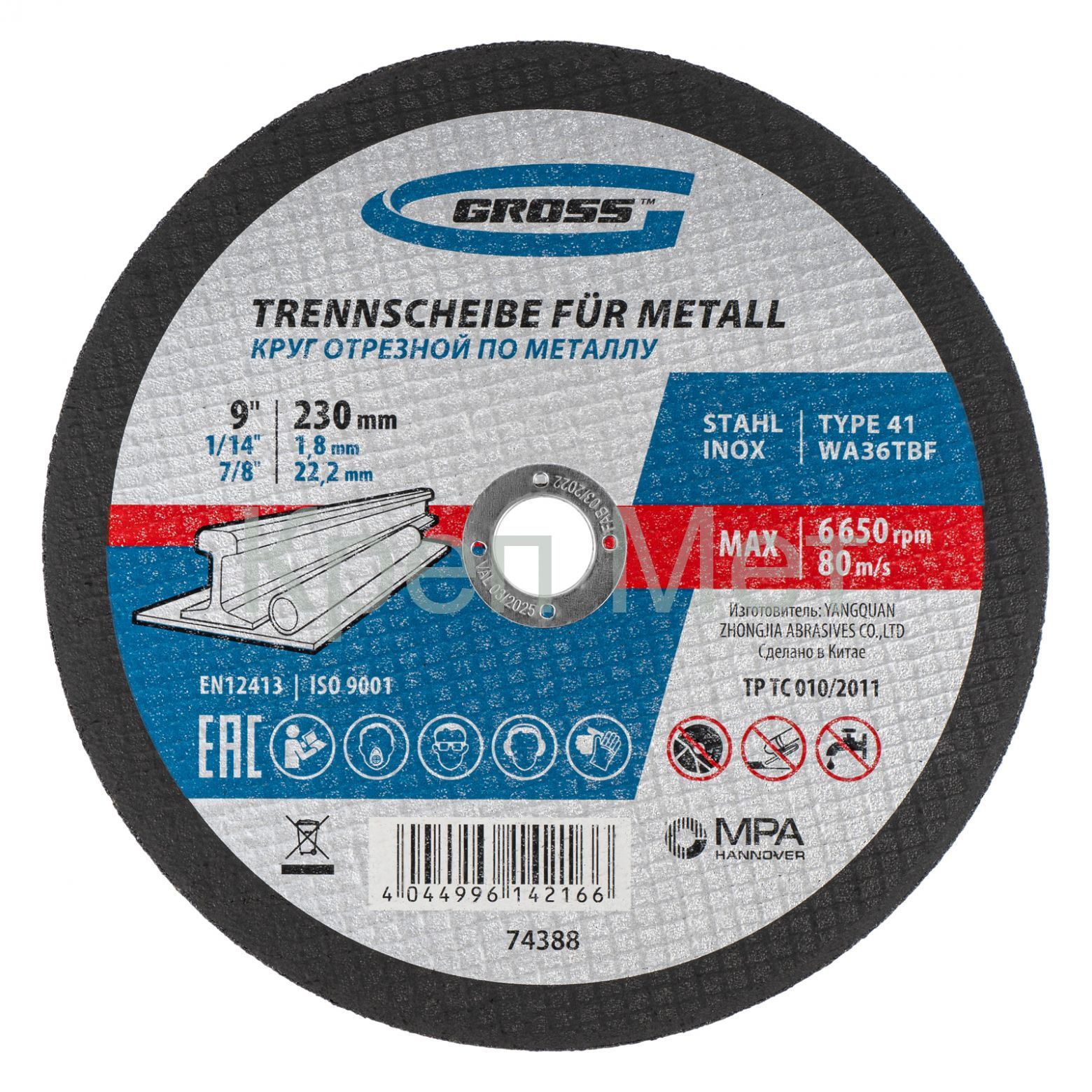 Круг отрезной по металлу, 230 х 1.8 х 22 мм Gross