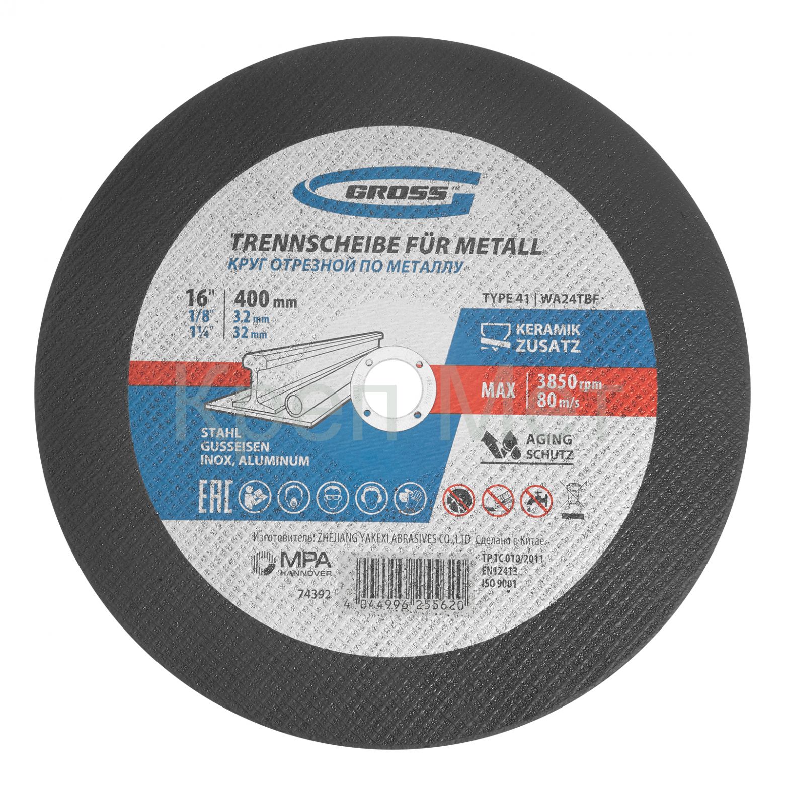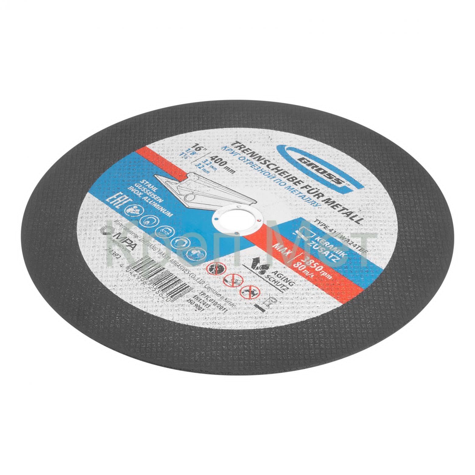 - Круг отрезной по металлу, 400 x 3,2 x 32 мм, WA24TBF// Gross