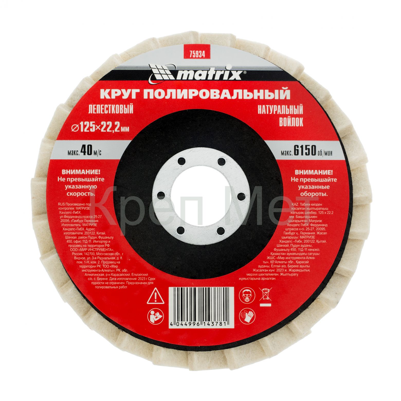 - Круг полировальный лепестковый из натурального войлока 125 х 22.2 мм Matrix