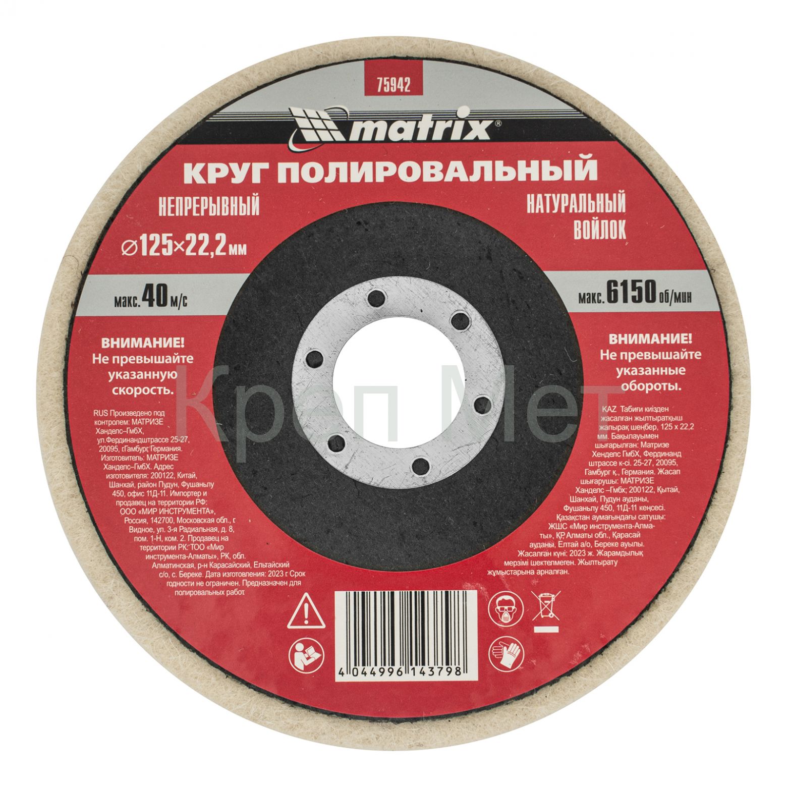 - Круг полировальный непрерывный из натурального войлока 125 х 22.2 мм Matrix
