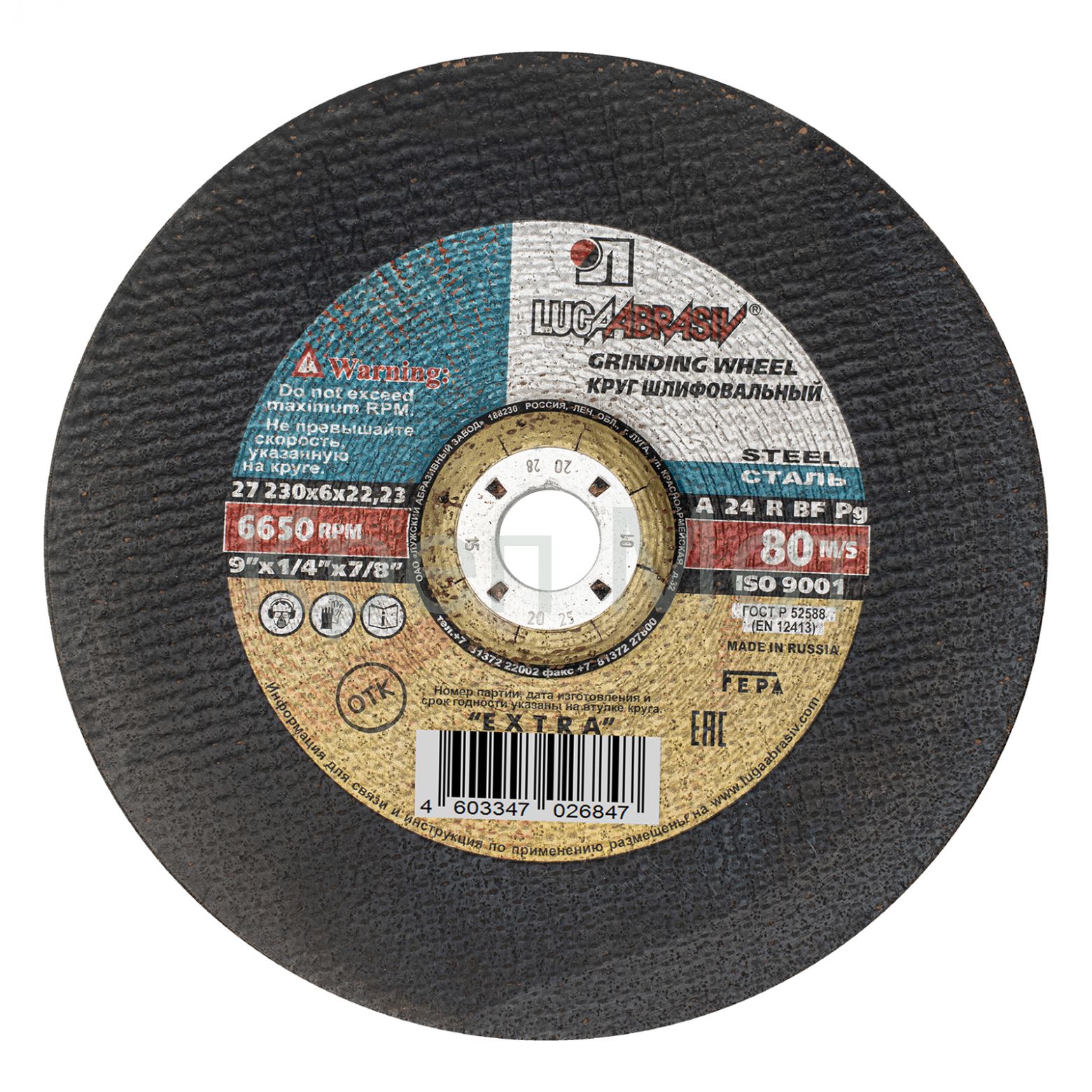 Круг шлифовальный по металлу, 230 х 6 х 22.2 мм, "Луга"