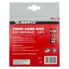 - Круги фибровые 5 шт, Р 60, 115 х 22 mm Matrix