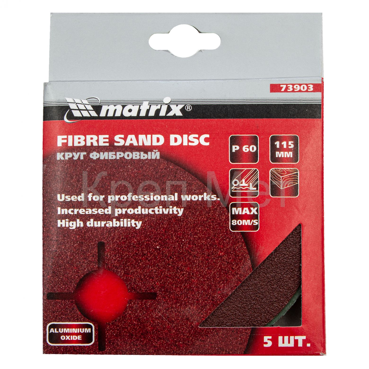 Круги фибровые 5 шт, Р 60, 115 х 22 mm Matrix