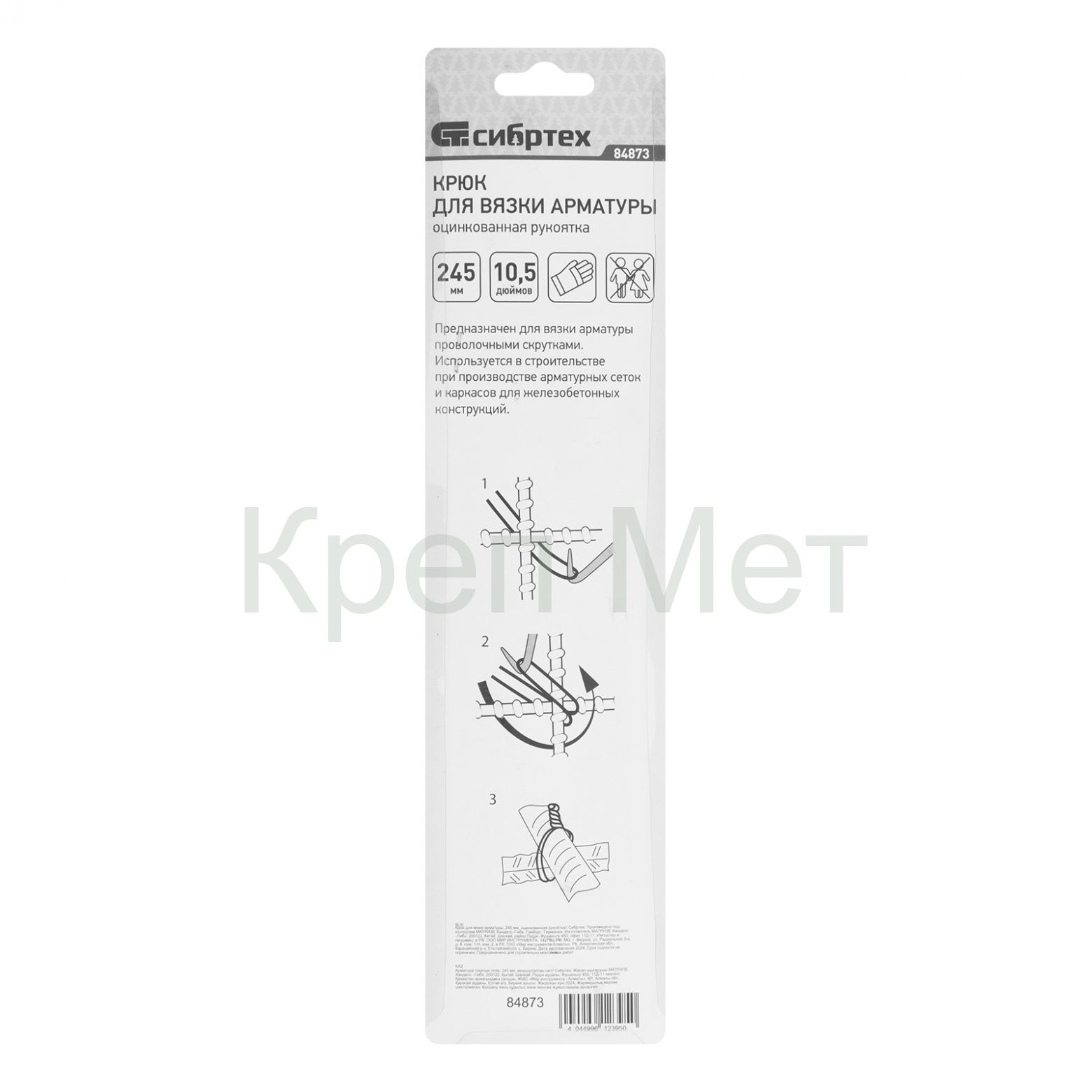 Крюк для вязки арматуры, 245 мм, оцинкованная рукоятка Сибртех